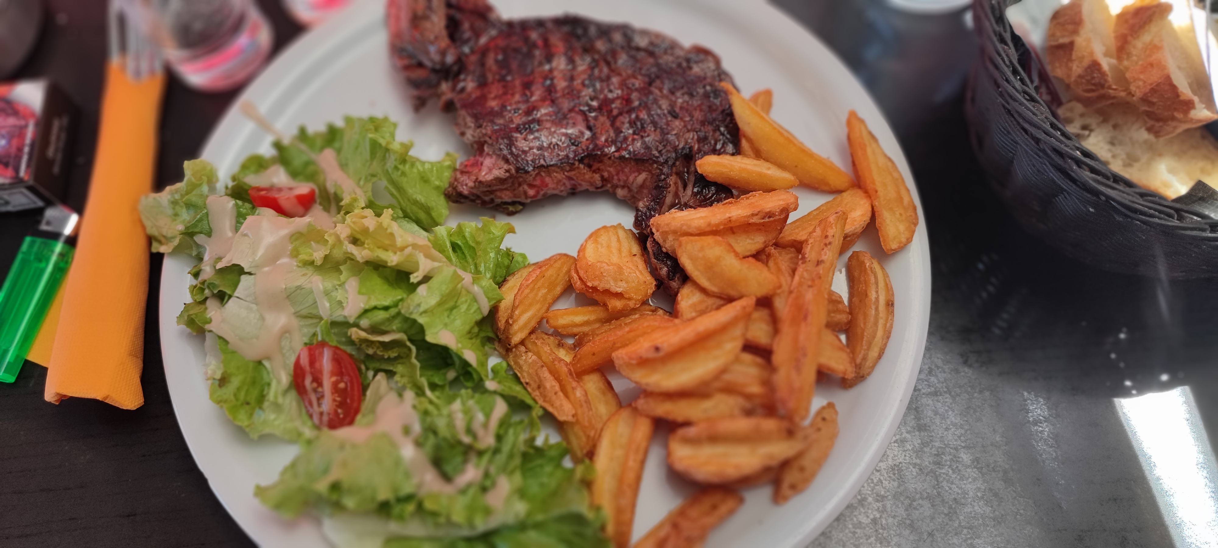 Bien... mais la petite barquette de frites... tarif exagérément élevé..4€... à revoir... surtout que le prix de revient est disproportionné..on le sait...le café et les frites....le meilleur rapport du bistrot... alors..Avis !!!