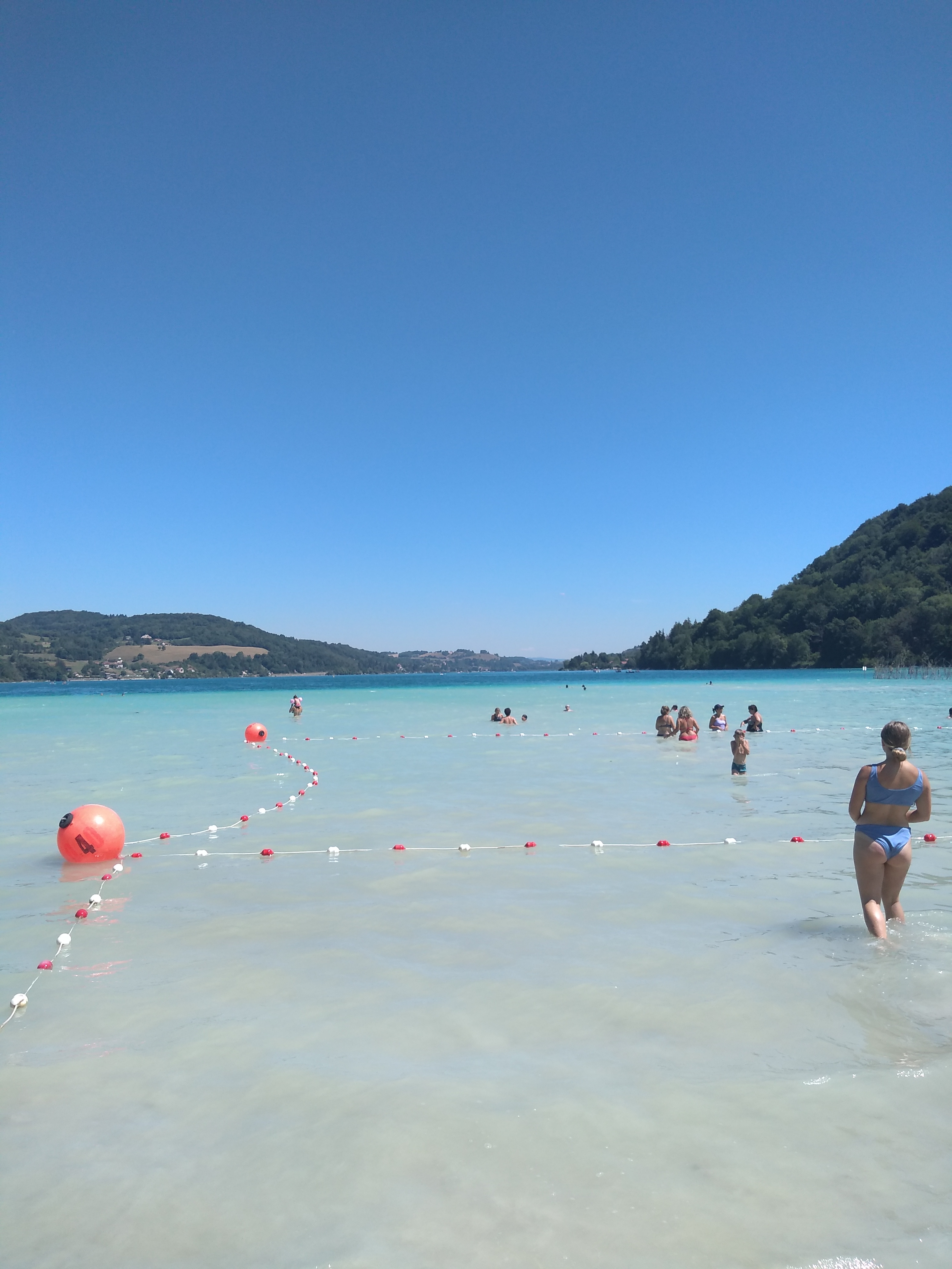 Très beau lac, eau limpide, on se croirait près qu'aux caraïbes ! L'eau était à 25*C. On a pied pendant longtemps. La baignade est surveillée