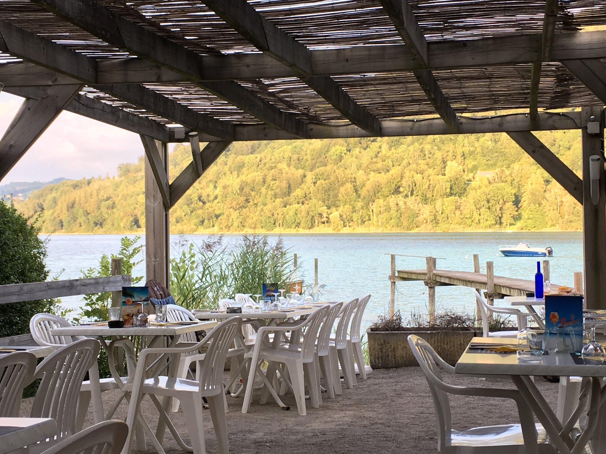 Bon restaurant, accueil sympathique et chaises longues au bord du lac. Parfait pour un moment de détente