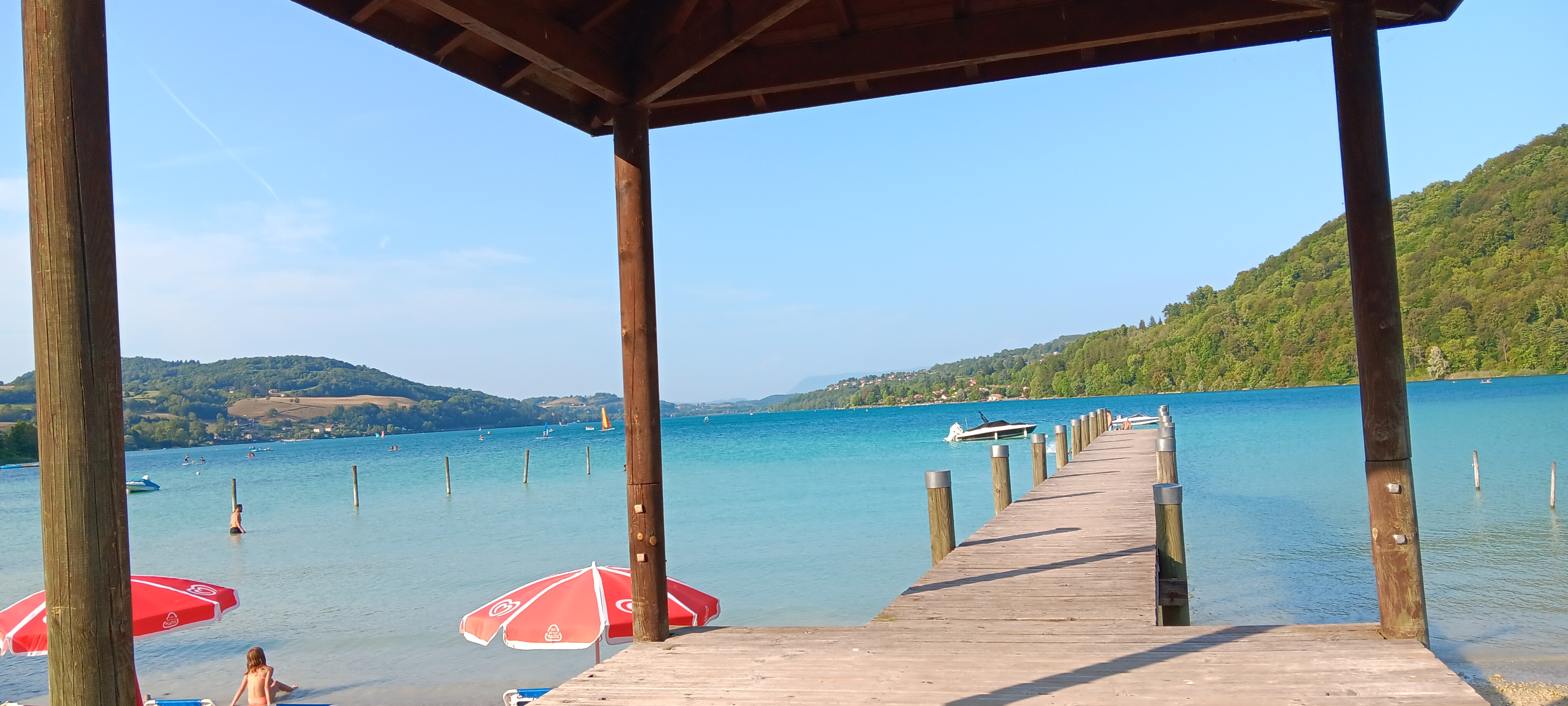 Vraiment super 👍. Tout le monde très sympa, bonne ambiance. On y mange très bien 👍. On peut aussi se baigner et louer un transat. On peut accéder à l'eau aussi par un long ponton. Très jolie restaurant, avec terrasses. Vues sur le lac. Le lac est magnifique , l'eau est claire sa couleur turquoise est due à la craie lacustre qui recouvre ses fonds. Craie, qui est également bénéfique pour la peau. Je vous recommande se restaurant, mais réserver avant c'est mieux 😊.