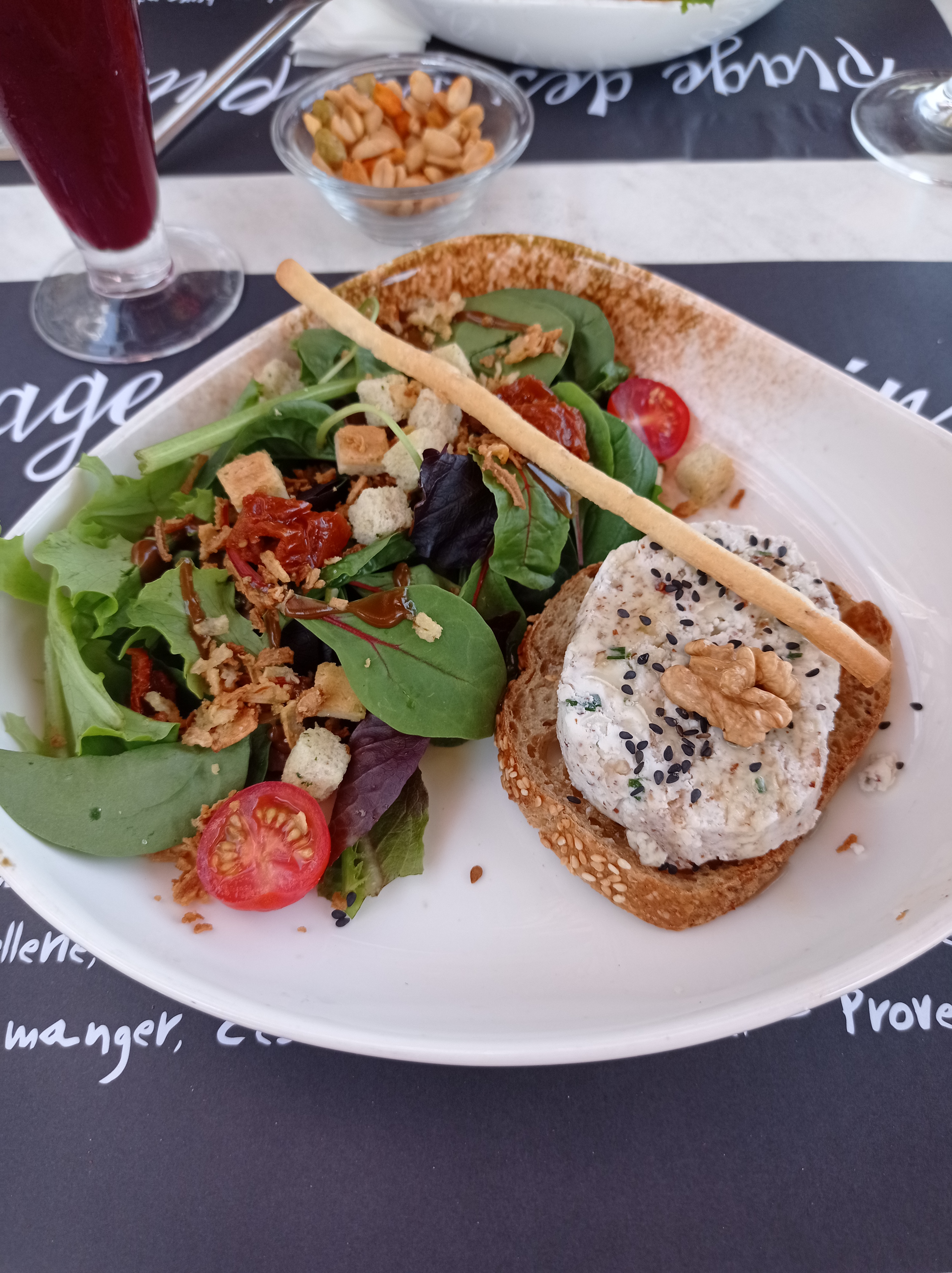 Assiette bien chargé j'ai pris une assiette végétarienne j'avais peur d'avoir faim après vu que c'est qu'une salade finalement c'était super copieux et super bon. Et pas si cher ça vaut la qualité prix. Et un cadre magnifique. Je conseille vraiment j'y retournerai