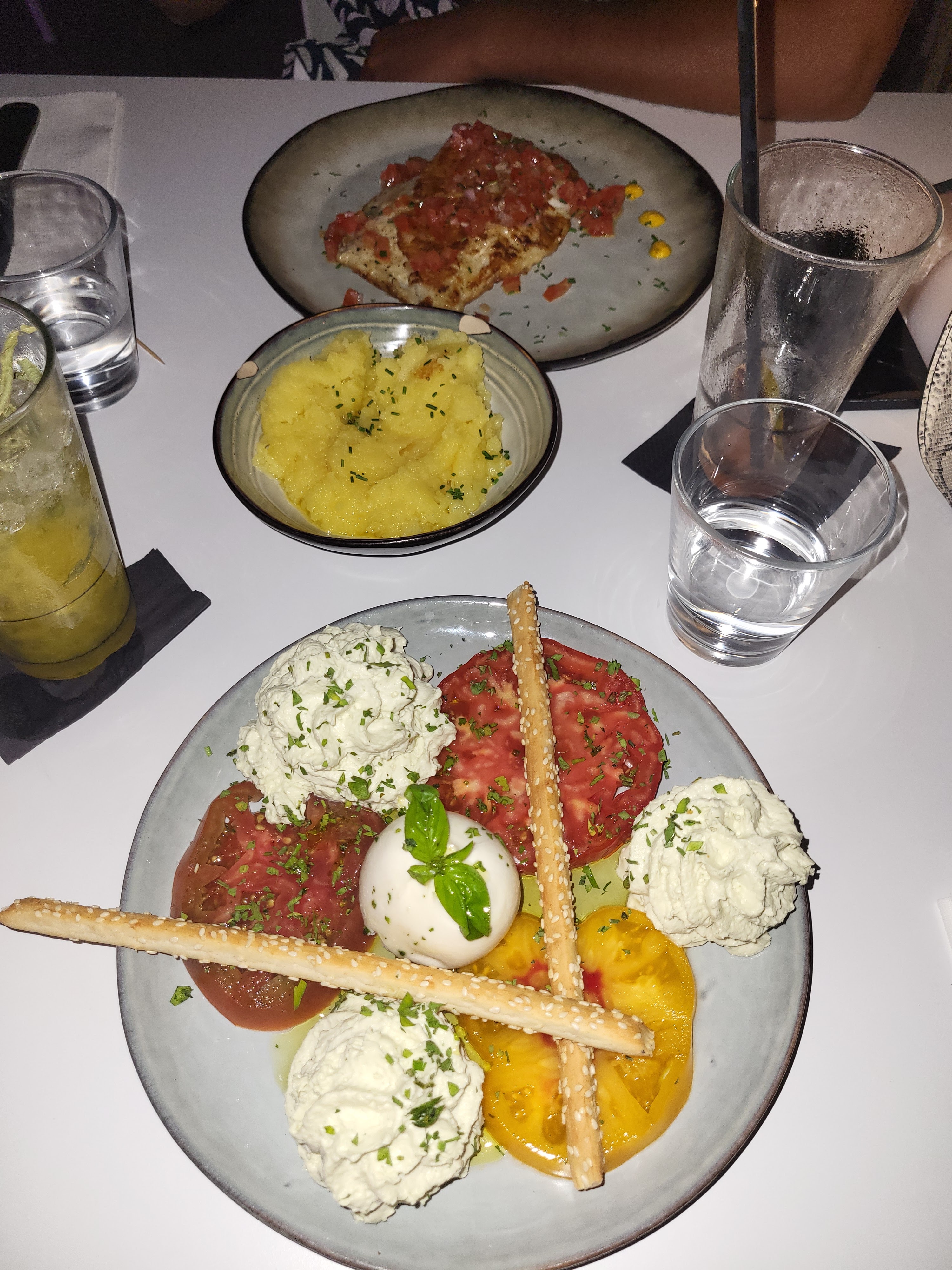 Par une belle soirée ensoleillée et fraiche, excellent accueil, très belle table avec vue sur une mer tellement bleue. Quelques excellents cocktails pour nous réchauffer et enfin des plats très fins et savoureux. Bravo à tous.