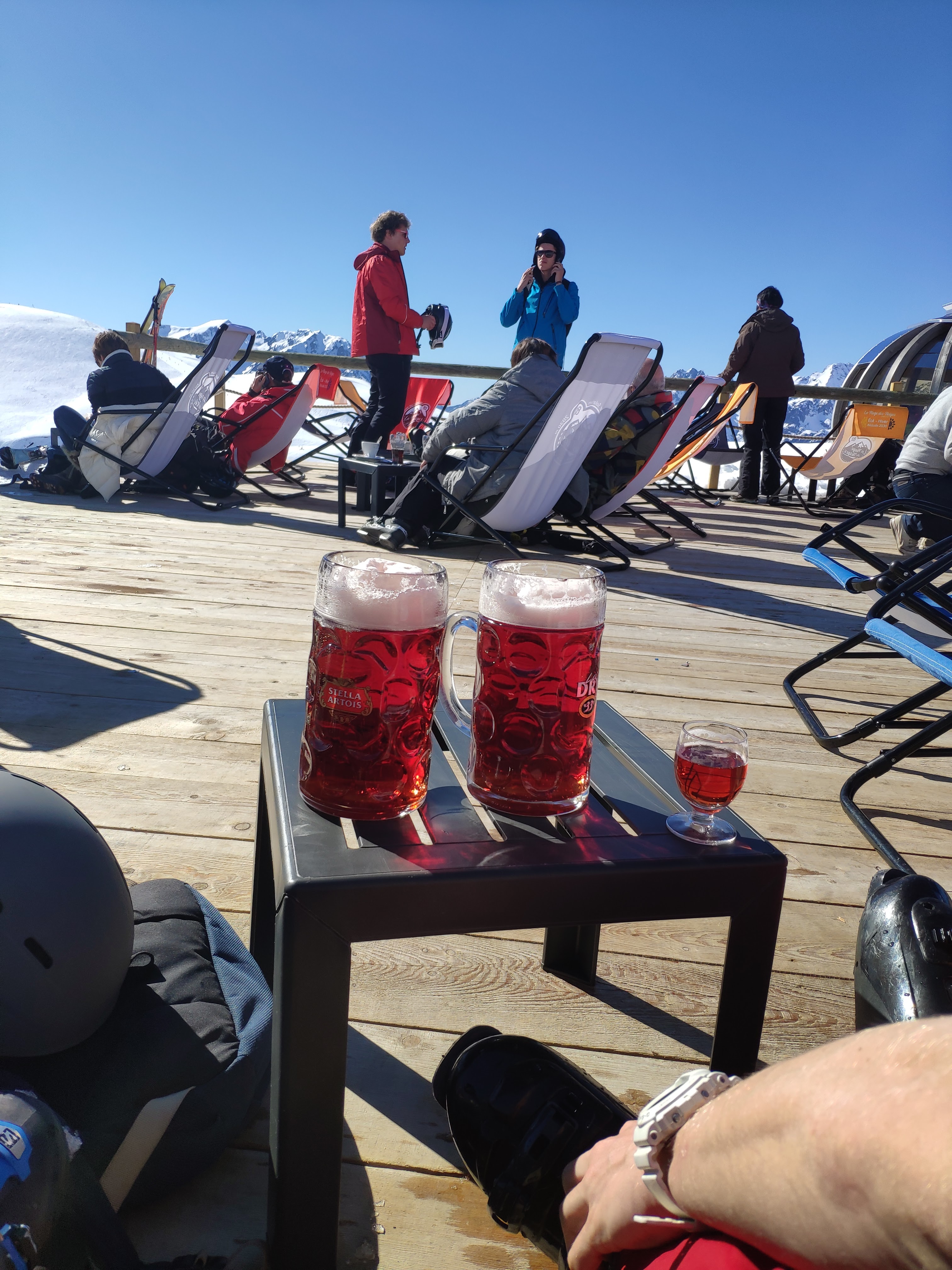 Belle pause au soleil entre quelques pistes pour se restaurer.