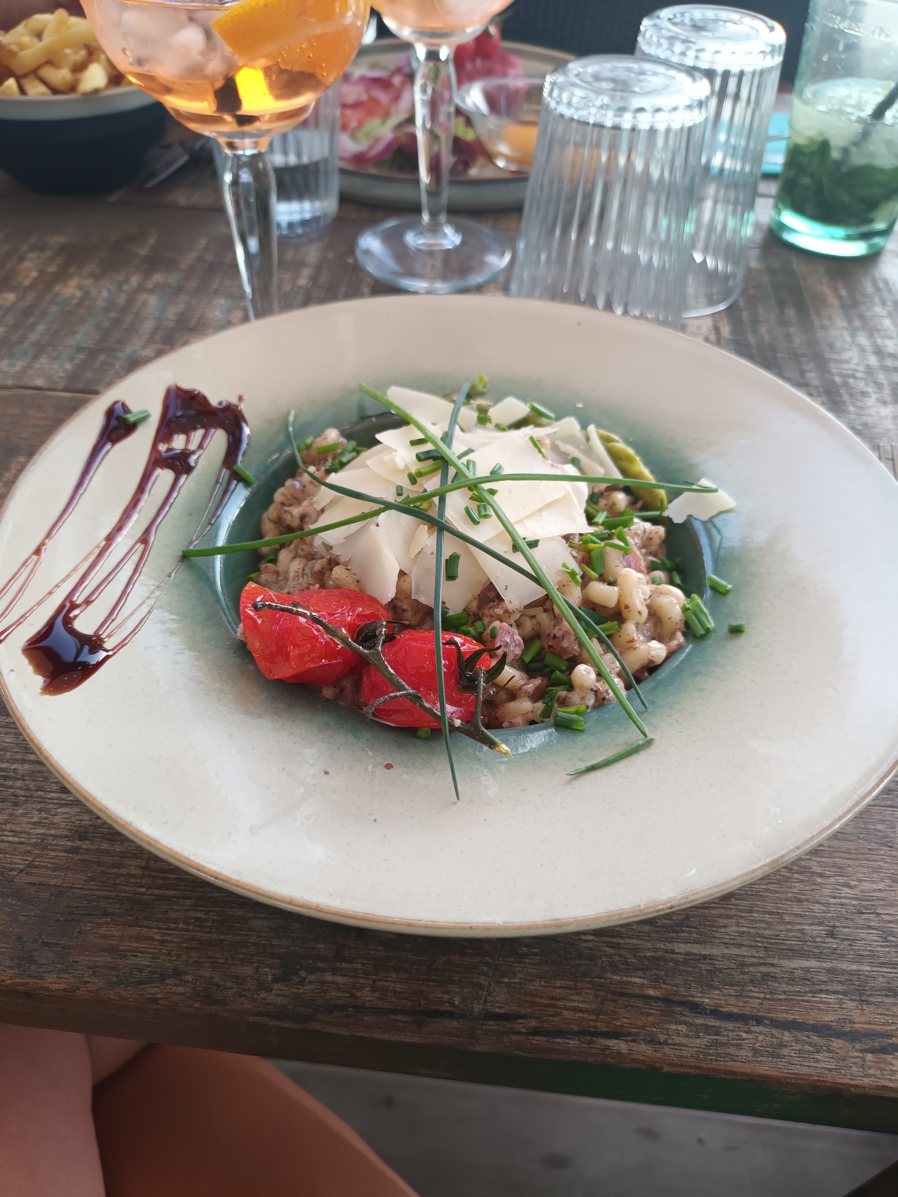 Nous avons super bien mangé ! Cadre idéal. Serveurs avenants, professionnels et très agréables. Salade st Marcelin très bonne et copieuse. Risotto crevette chorizo excellent. Le seul bémol (si je dois en mettre un) ils ne prennent pas les tickets restaurants.