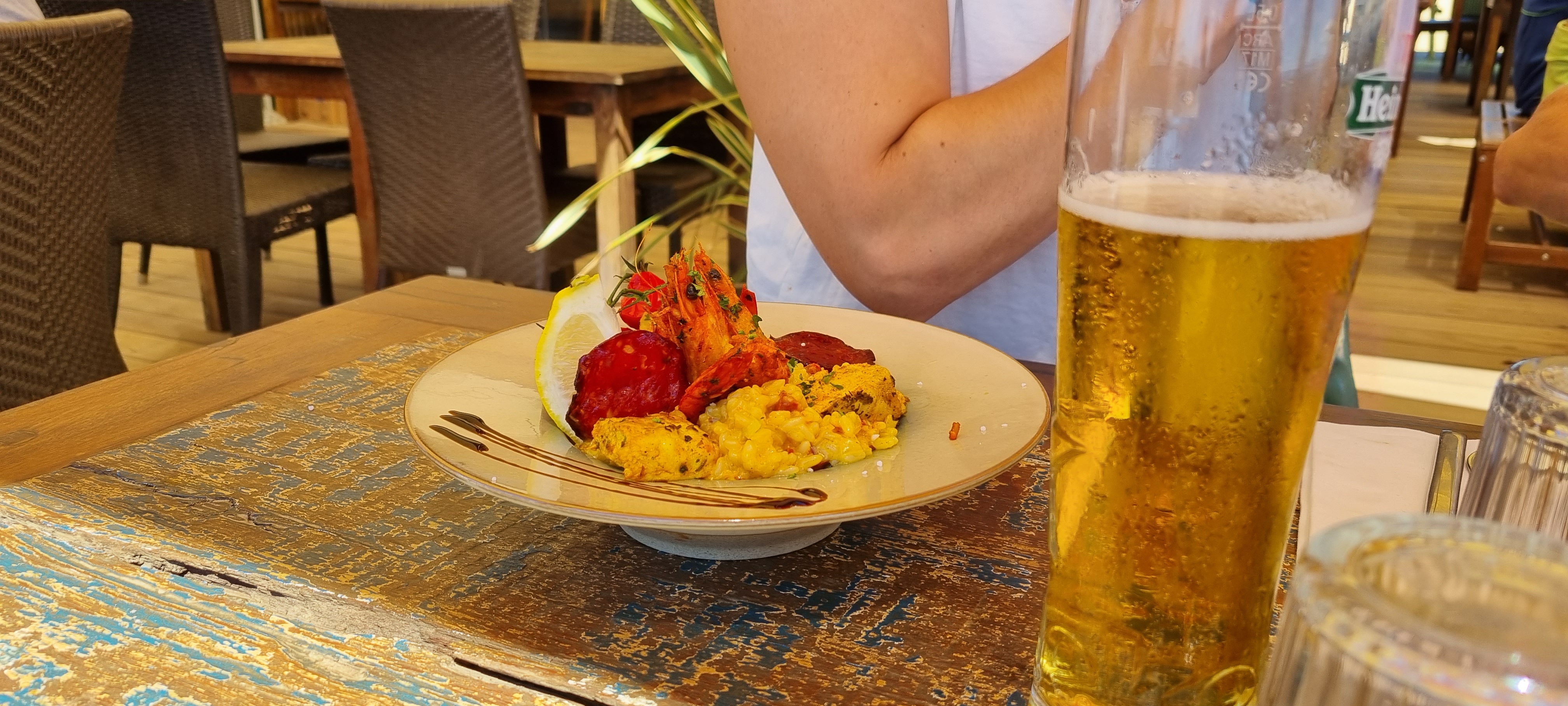 Tres bon restaurant de plage Le serveur très professionnel Et très bon et copieux.