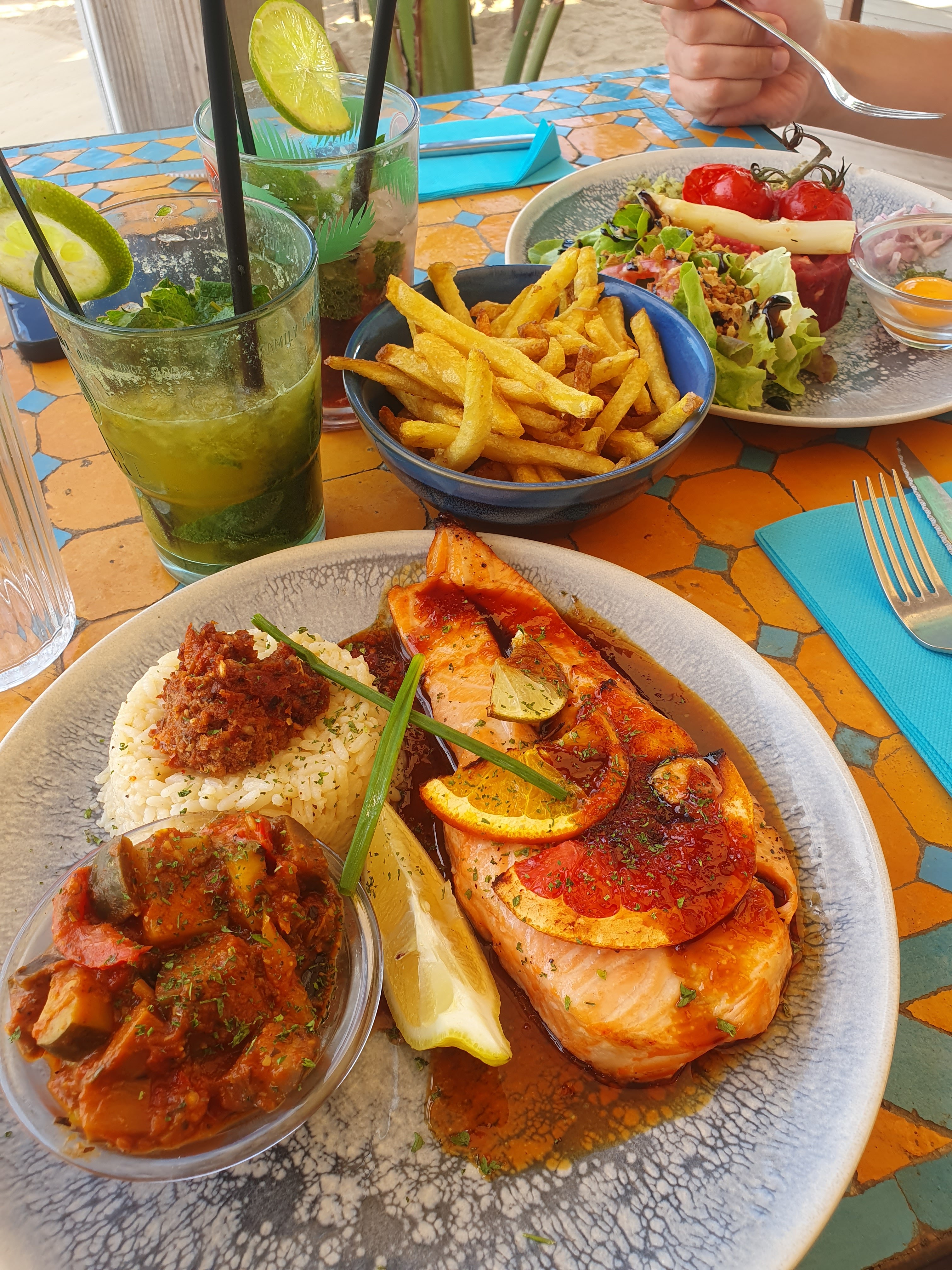 Les plats sont véritables savoureux, colorés et relativement copieux. Le personnel plutôt sympa. Petit bémol pour les Mocktails...9€ c'est légèrement abusé.