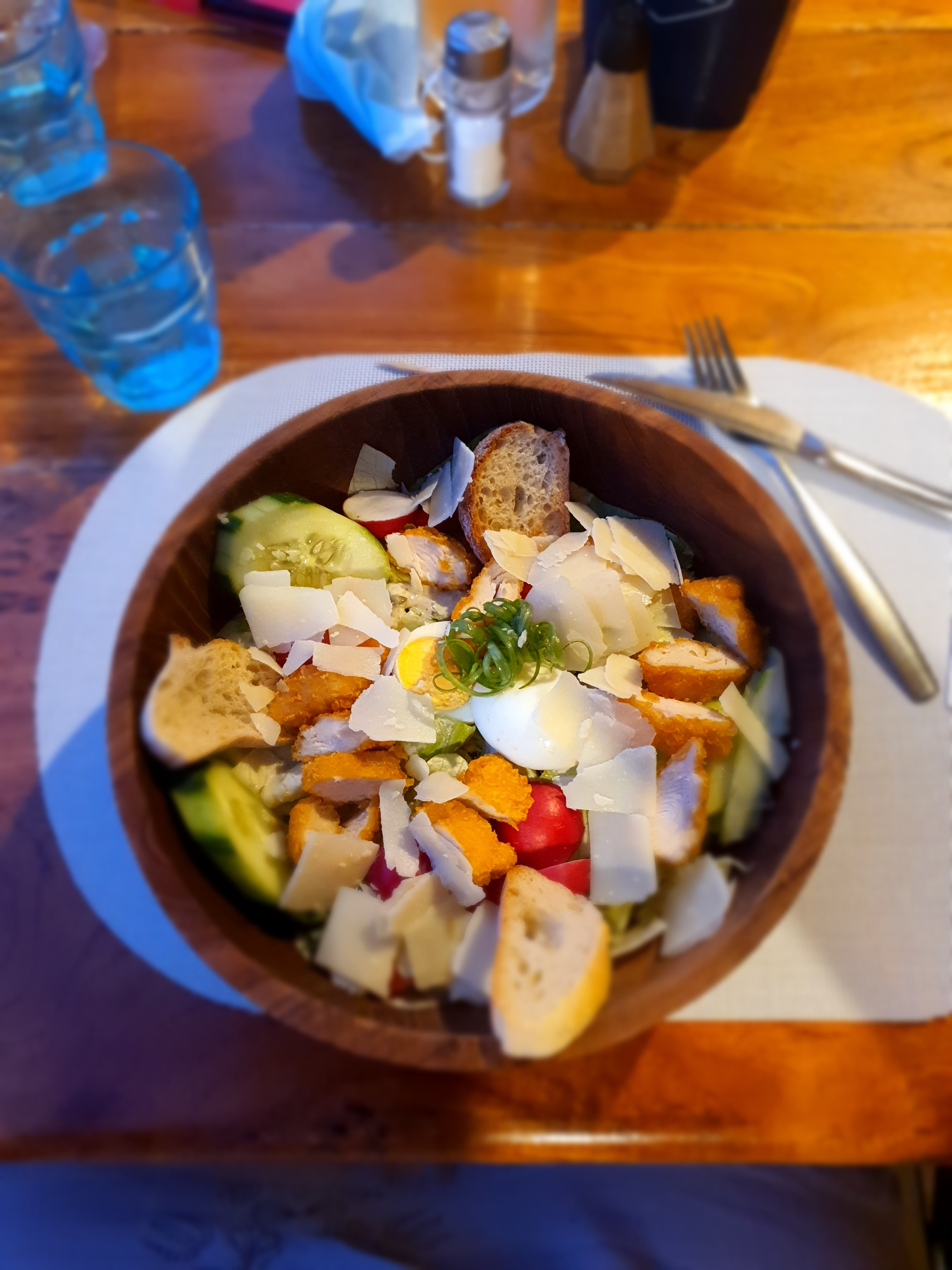 Cadre incroyable (ce qui vaut les 2 étoiles). Salade Cesar (16 euros) composé a 95,6% de salade verte (sans sauce) donc un peu déçue je suis pas une tortue. C’était sympa mais on a fini la soirée a MK : allez mettre un avis là bas c’est grave bon par contre !!