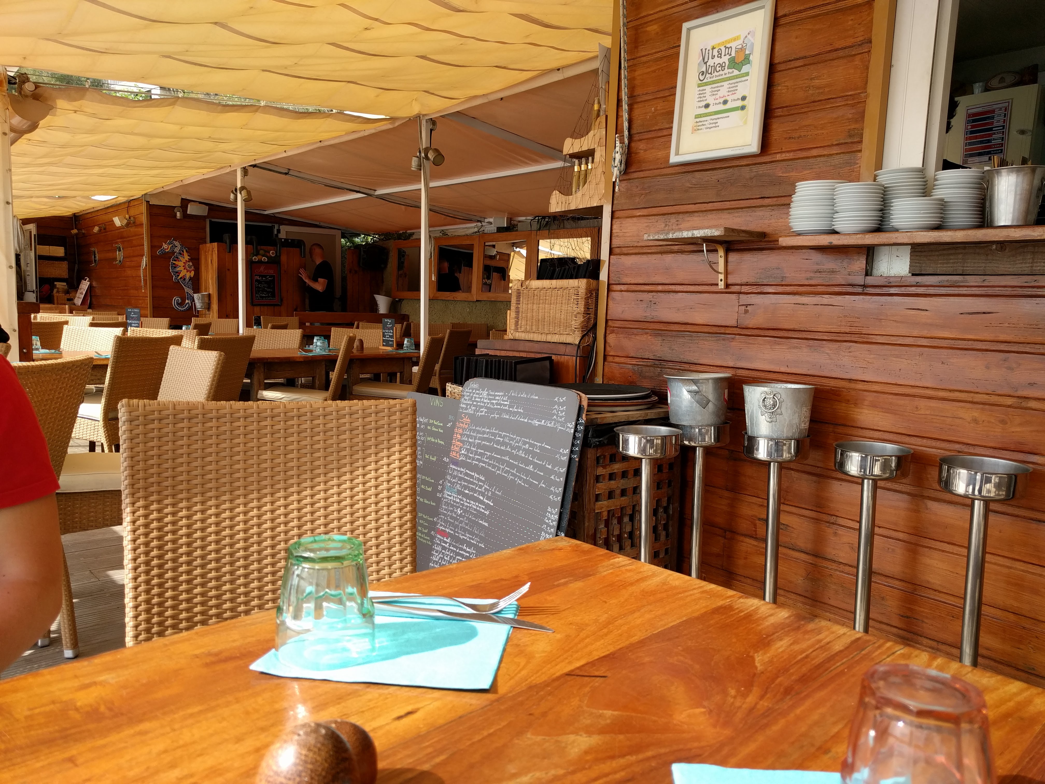 Malheureusement les plats ne sont absolument pas à la hauteur du cadre. En arrivant on se croirait sur une île ou au Brésil mais dans l’assiette ce n’est pas le même voyage! Le calamar baigne dans l’huile, le riz est tout juste bon pour mon chien, les légumes « une ratatouille » plutôt « ratamolle » car ils sont bouillis. Je n’ai pas pu manger le plat. Et pour une note très salée ! Même pas un geste commercial car le serveur m’a demandé pourquoi l’assiette est retournée intact. C’est vraiment très très dommage de racheter une telle institution, présente depuis 30 ou 40 ans et dans laquelle on allait avec plaisir chaque été, pour tout gâcher. Le rapport qualité prix n’est absolument pas bon, le cadre ne vous permet pas tout, nous ne reviendrons pas et je fais passer l’info autour de moi…