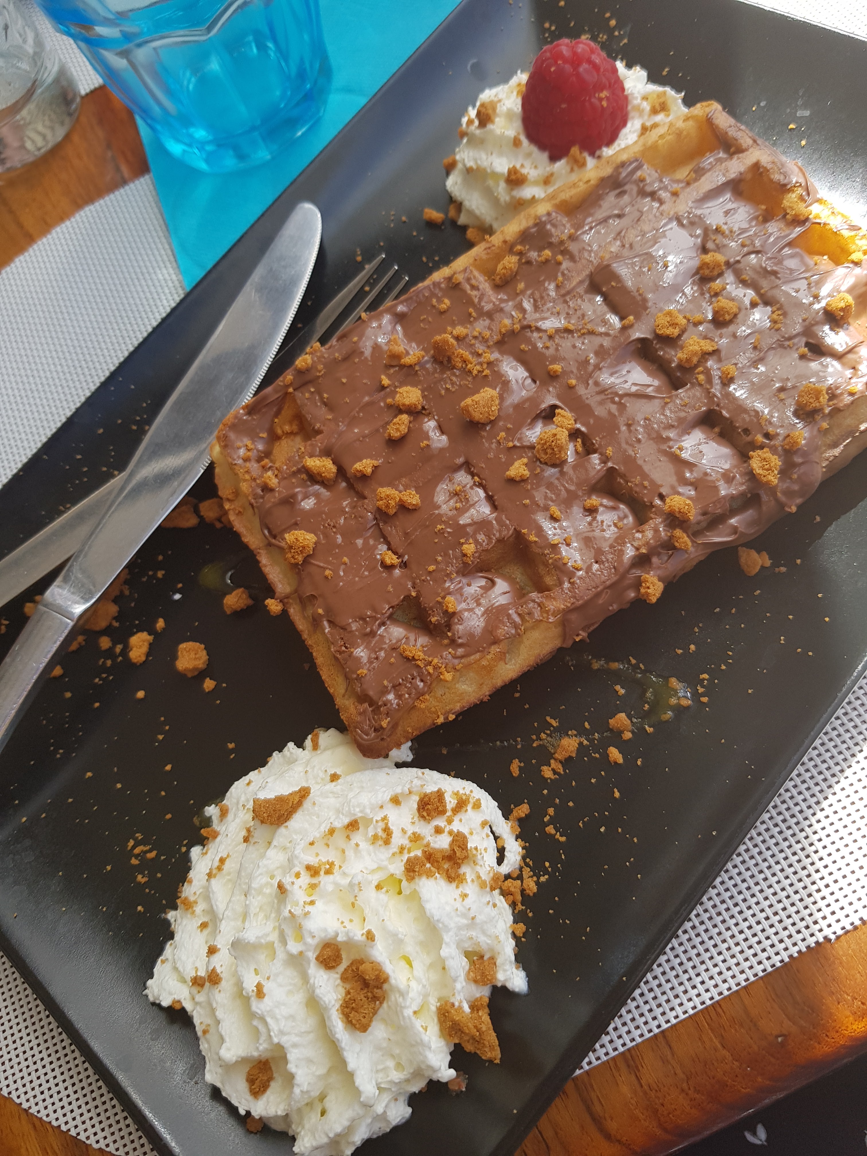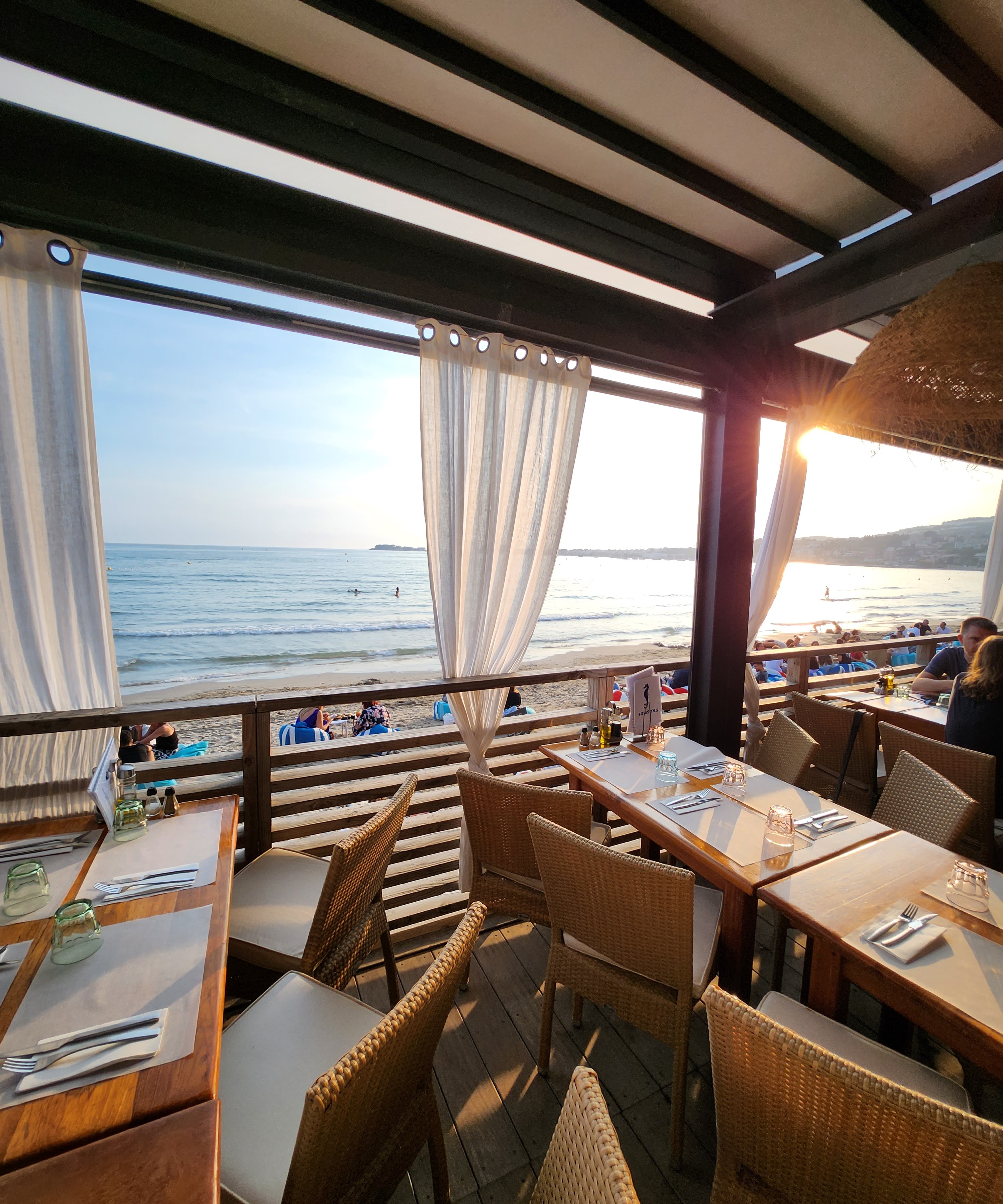 Nous y avons bien mangé, le dessert bien que très cher était toutefois excellent, mais 4,20 € le double expresso c'est abusé nous ne sommes pas au Sénéquier ici, loin de là. Si vous prenez les transats, choisissez ceux sur la plate-forme en bois c'est plus sympa et surplombe les gens sur la plage. Vu moyenne, pas extraordinaire.
