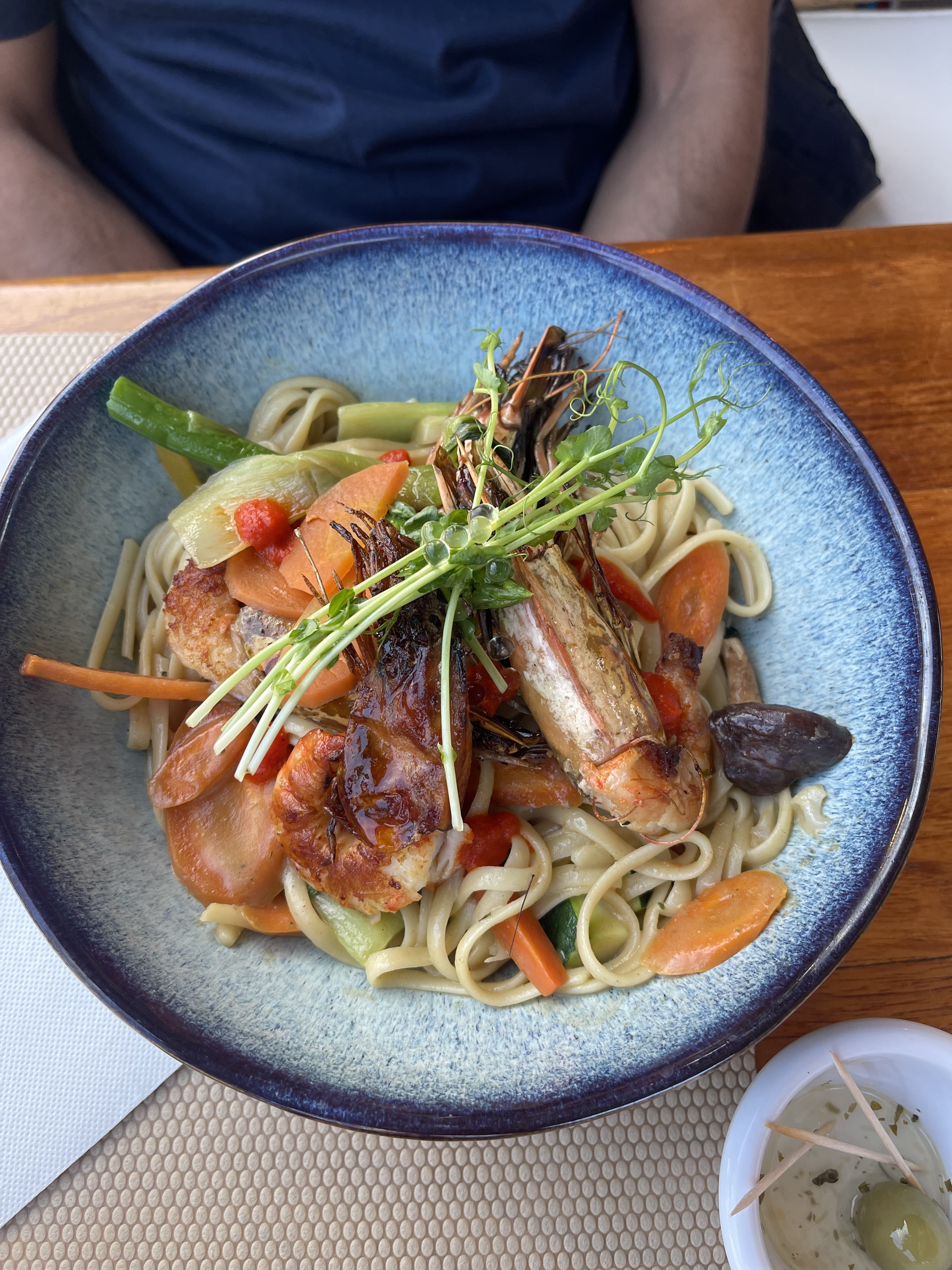 Le restaurant horrible service nul et arrogant une entrée salade pourrie , noir sur les 2 plats le loup trop grillé et le thon mi cuits façon tataki extriment cuits pas de goût, les légumes et le riz aucun goût, La seule restaurant de la plage ils profits des touristes je retournerai jamais 🤮