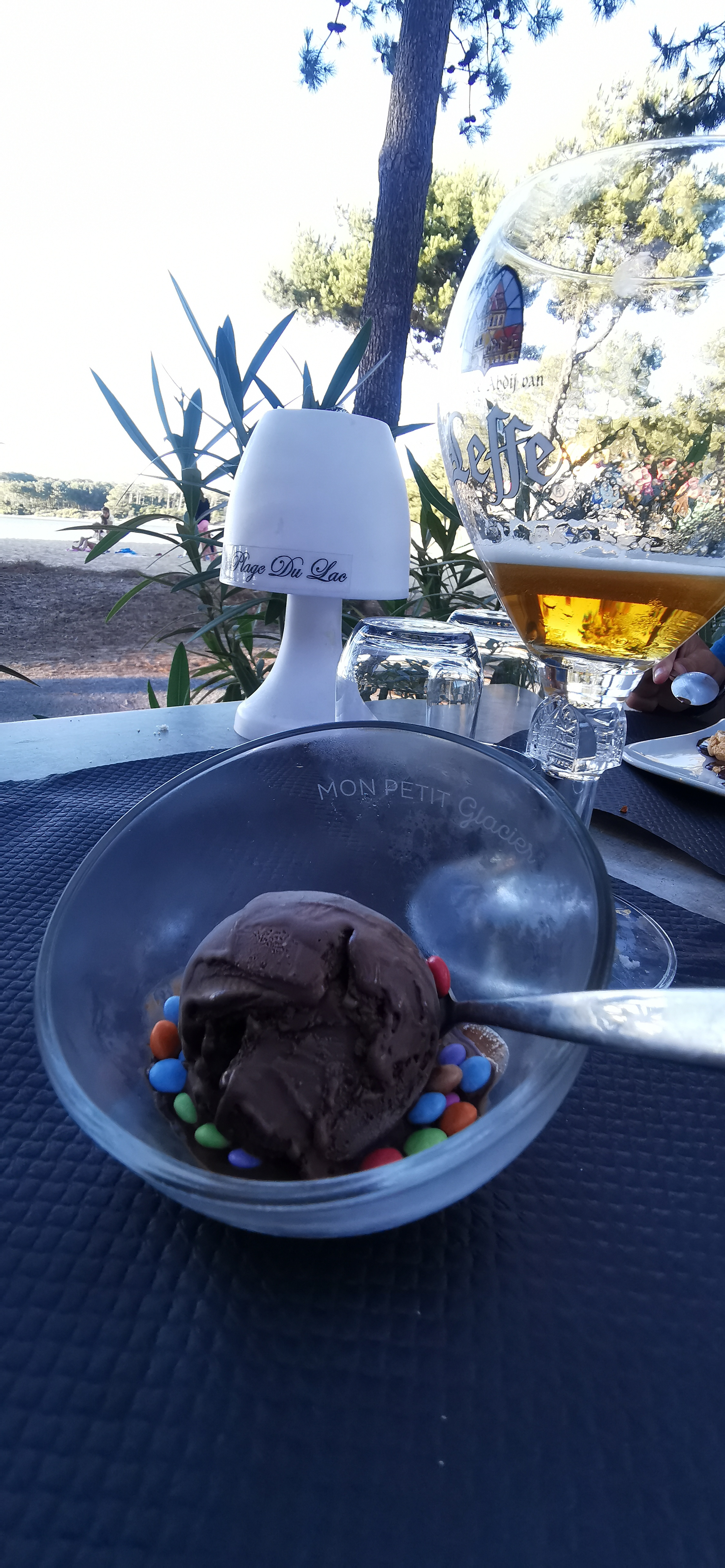 Cadre sympathique. Au bord du lac sous un voile pour le soleil. Les plats sont généreux. Savoureux et bien cuisinés. Les prix raisonnables. Les produits frais. Des profiteroles extras.
