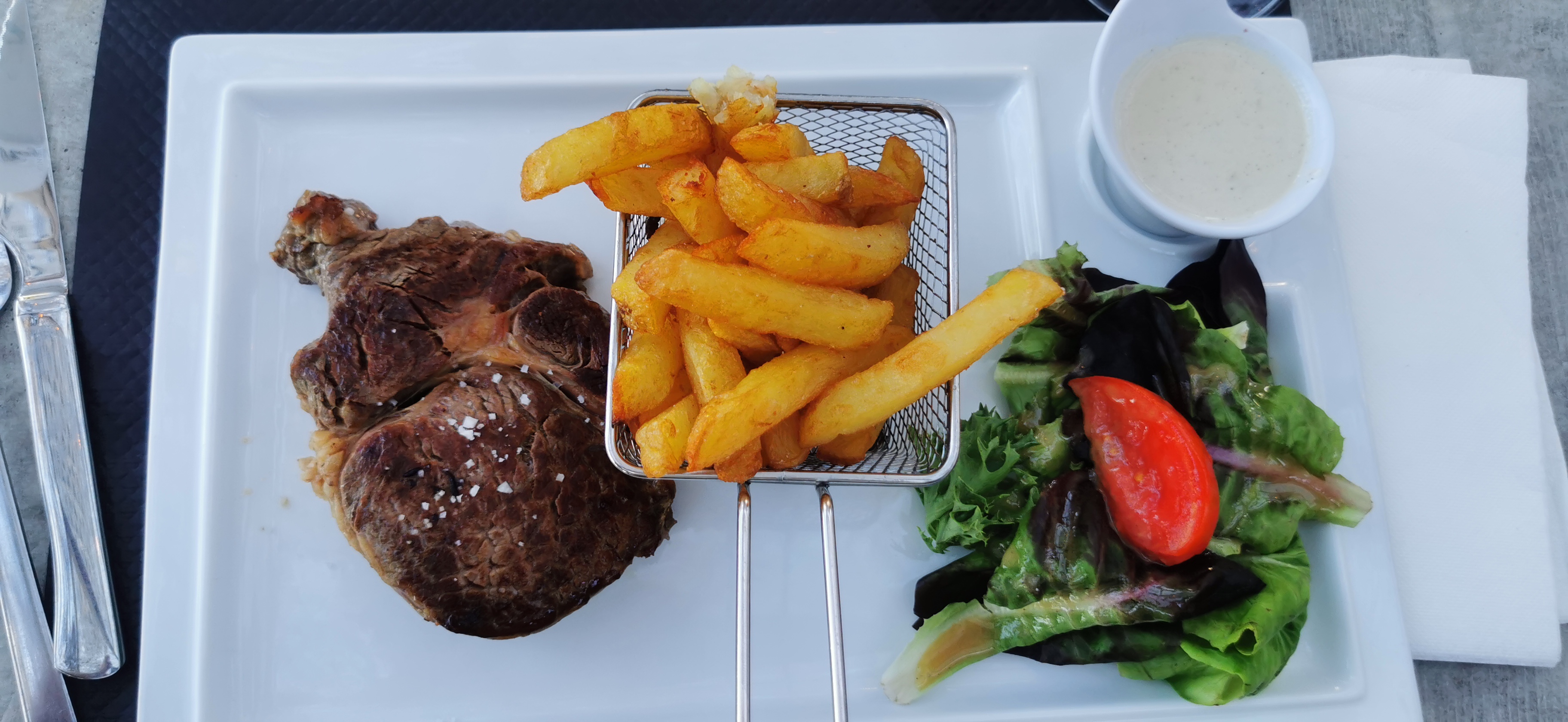 Rien à dire...je recommande à 100% la cuisson des moules, le jus et la cuisson du saumon étaient juste parfait. Belle vue sur le lac marin...