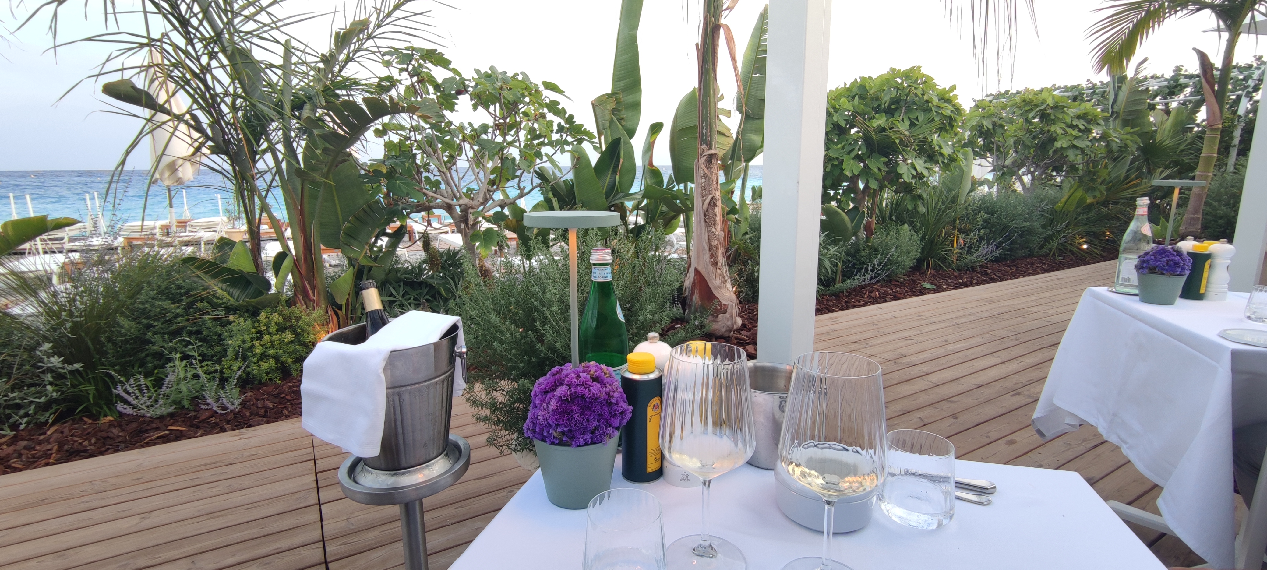 Nice est ma ville natale et je dois dire que c'est devenu de loin mon restaurant avec vue mer préféré dans la région ! Nous étions un groupe d'amis aux goûts différents, y compris des adolescents difficiles, et chacun d'entre nous a tout simplement adoré. L'ensemble de l'espace respire une élégance décontractée et, avec la vue magnifique sur les bleus saisissants de la Méditerranée entre des centaines de plantes luxueuses, on se sent en Asie ou dans les Caraïbes plutôt que dans le centre animé de Nice. Il est incroyablement rare qu'un restaurant français crée un espace aussi relaxant et aéré. Si serein qu'il faut du temps pour commencer à remarquer à quel point tout et tout le monde est professionnel, peut-être aussi parce qu'ici les serveurs sont vraiment sympathiques et attentionnés. Nos cocktails étaient parfaitement adaptés à nos goûts, le ceviche et le filet de mer dans une délicieuse réduction mettaient la barre très haut, le T-bone était à tomber par terre et tous les plats suivants ne cessaient de chatouiller nos palais avec des ingrédients frais et de qualité dans des compositions créatives. , des combinaisons subtiles. Bien entendu, le vin proposé était parfait. Ce que nous avons également beaucoup apprécié, c'est la carte équilibrée, mettant à l'honneur le meilleur des fruits de mer méditerranéens, mais aussi des gourmandises de vrais amateurs de viande et d'appétissantes options végétariennes.