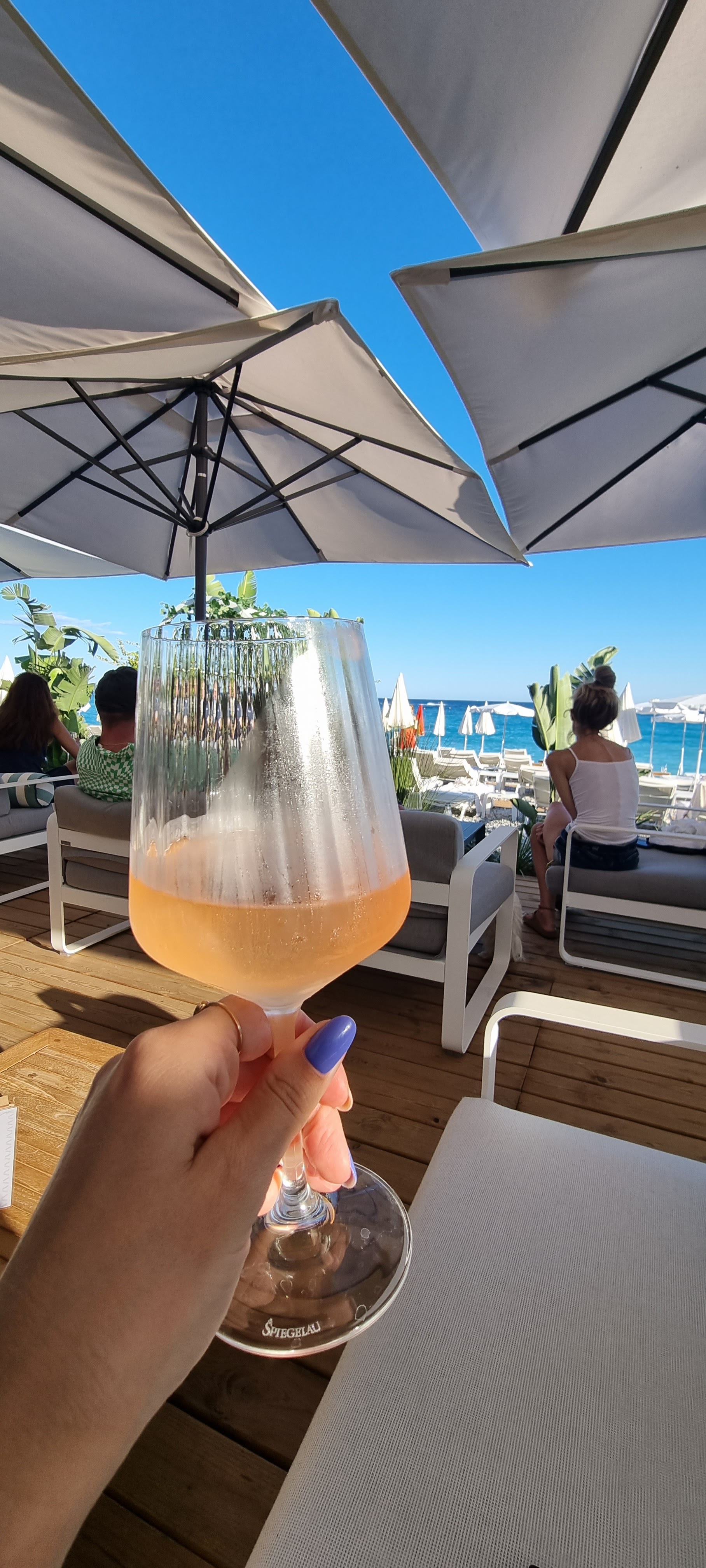 Le club de plage le plus élégant de Nice. La focaccia aux truffes est à tomber par terre. Et deux rouleaux de homard différents, dont un qui a remporté le prix mondial en 2018. L'atmosphère est sereine et belle. C'est parfait !