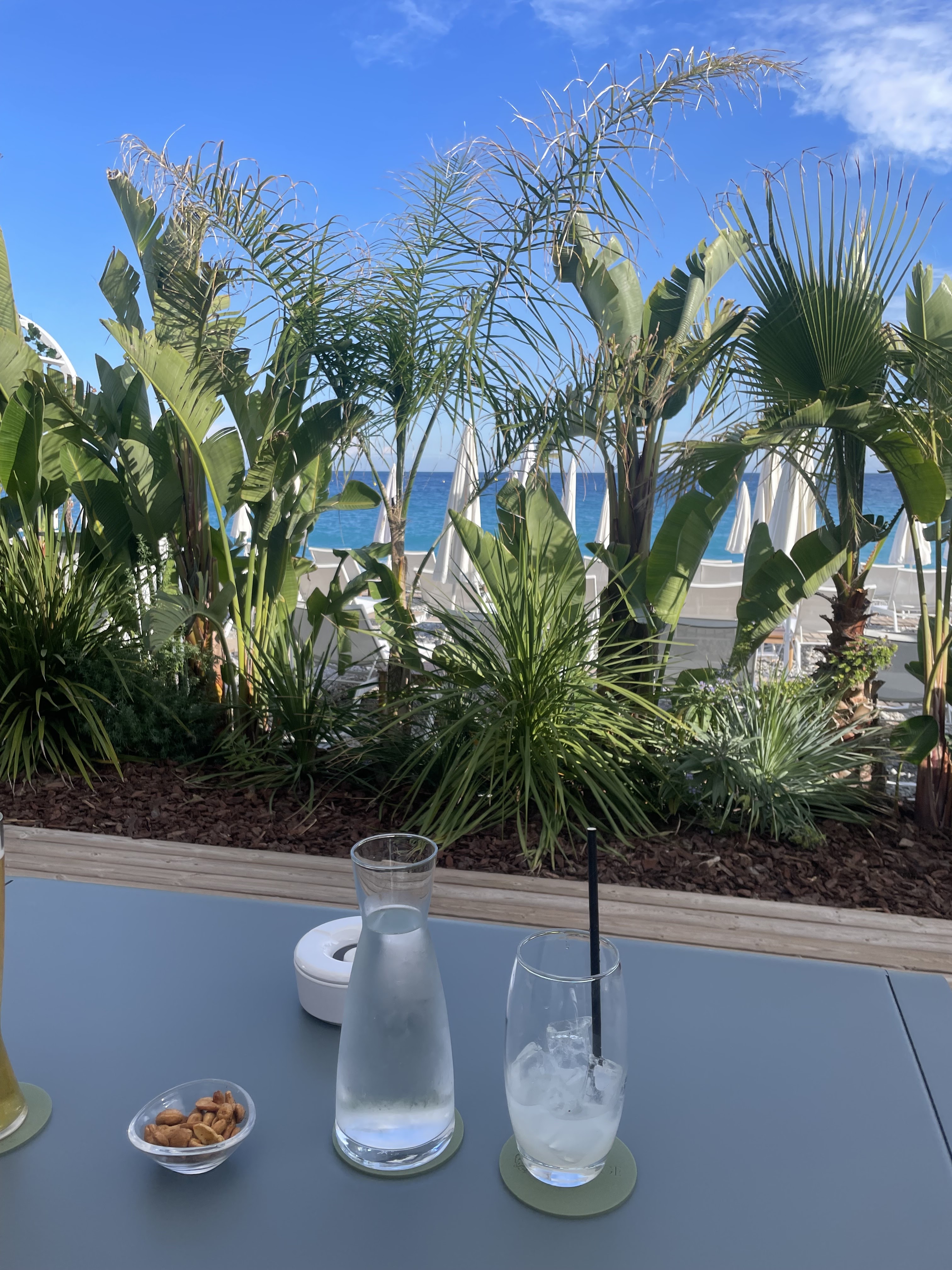 Endroit avec service attentionné concernant les boissons et le délai de préparation de ces dernières Le coin lounge est Isolé et permet d'avoir de l'intimité Par contre avoir une carte des boissons supportant d'énormes tâches c'est vraiment inacceptable Ça aurait pu passer sur le menu d' un restaurant routier et encore mais pas pour le negresco Absence d' aide lors du départ alors que nous étions chargés Cela était clairement visible très moyens pour un 5 étoiles Je voulais avoir un aperçu de cette plage avant de revenir avec ma famille afin de profiter pleinement de l' expérience (bed restauration etc ) Cette première expérience m'a laissé dubitatif en tant que Niçois