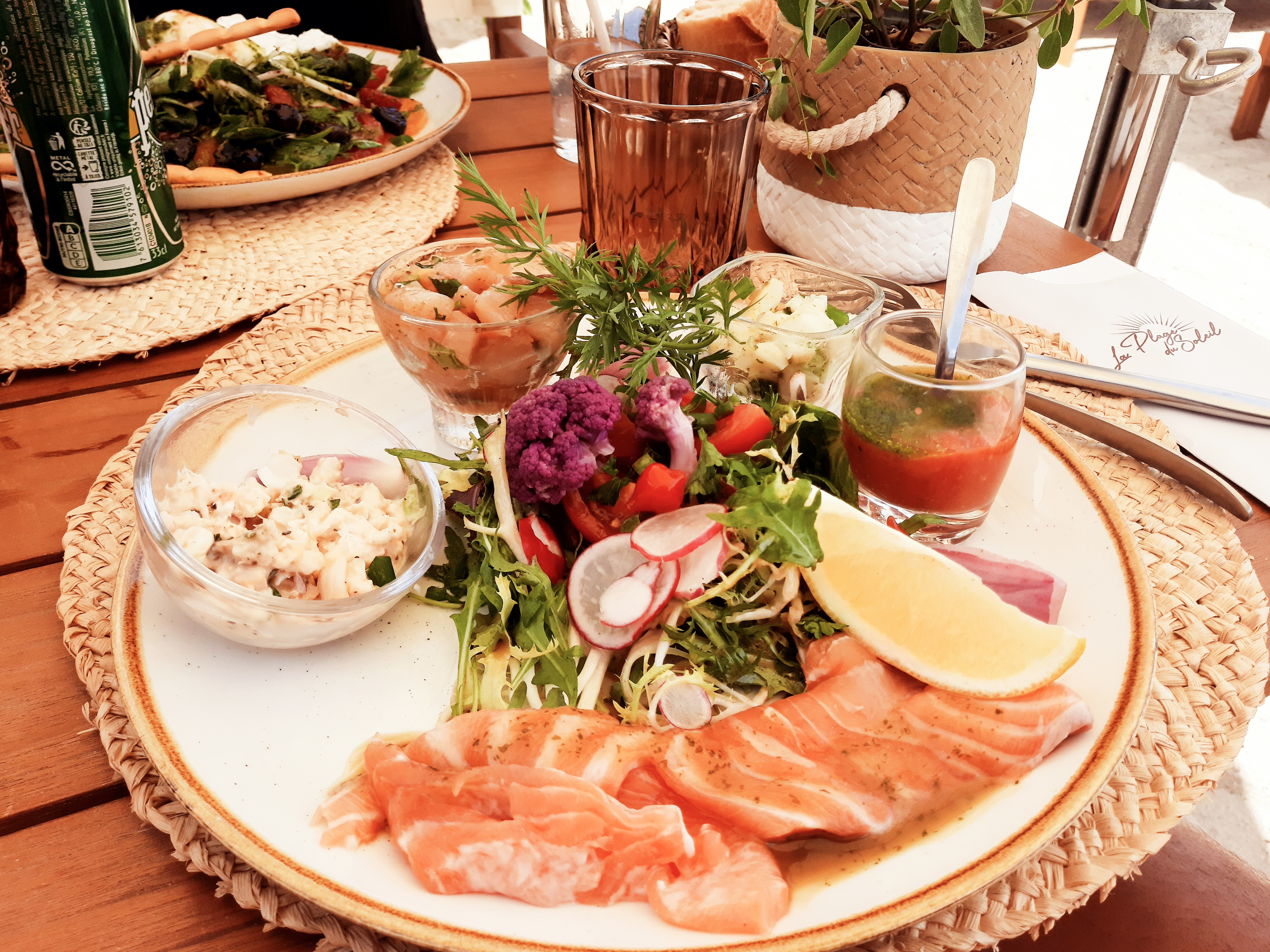Tout dans la simplicité, c’est cool ! Pas de chichis on est bien, en famille de surcroît. Déjeuner les pieds dans le sable et le soleil dans l’assiette, quoi de mieux !