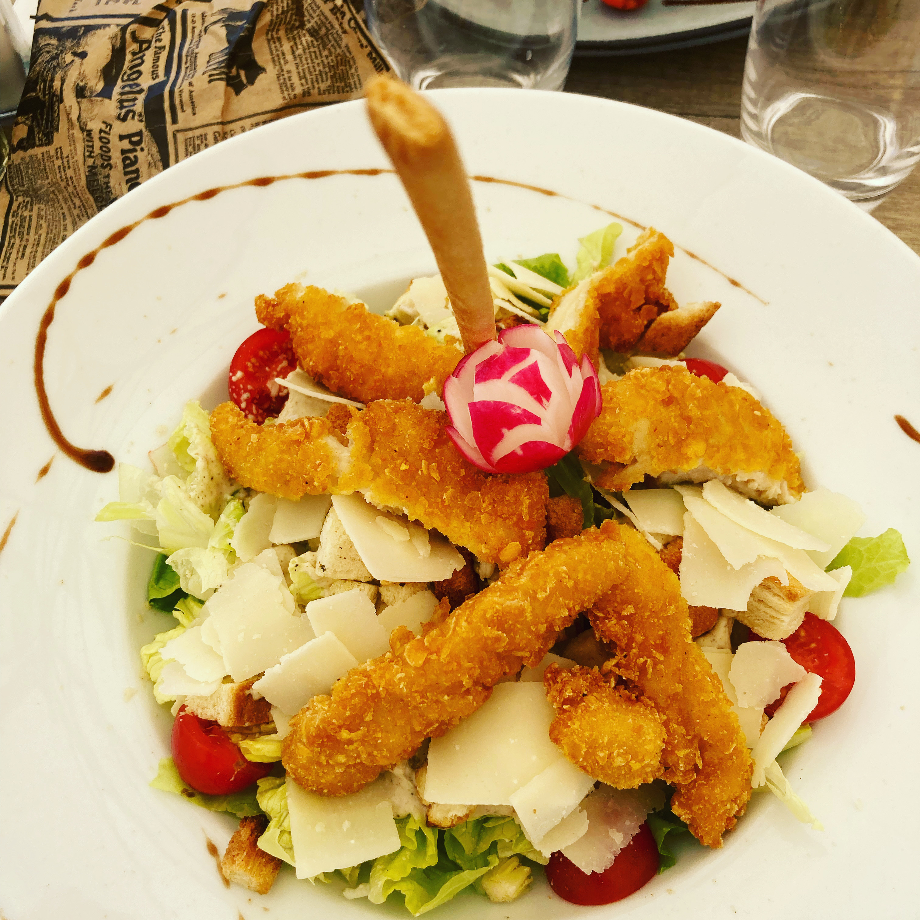 Arrivée après 1heure de tournis dans le parking !! Commande brochettes de poulet: il n'y en a plus, tagliate de boeuf: il n'y en a plus !! Finalement je me rabat sur un tartare de saumon (garniture salade).. Heureusement mon amie avait pris des frites ( dont quelques unes était encore congelées) qu'on a partagées sinon je sortais de table avec la faim !! Par contre si vous choisissez une escalope milanaise, elle vous sera servie avec des pâtes (il y en a presque pour 2)!!! La serveuse s'est confondue en excuses mais NON je ne reviendrai pas et je déconseille !
