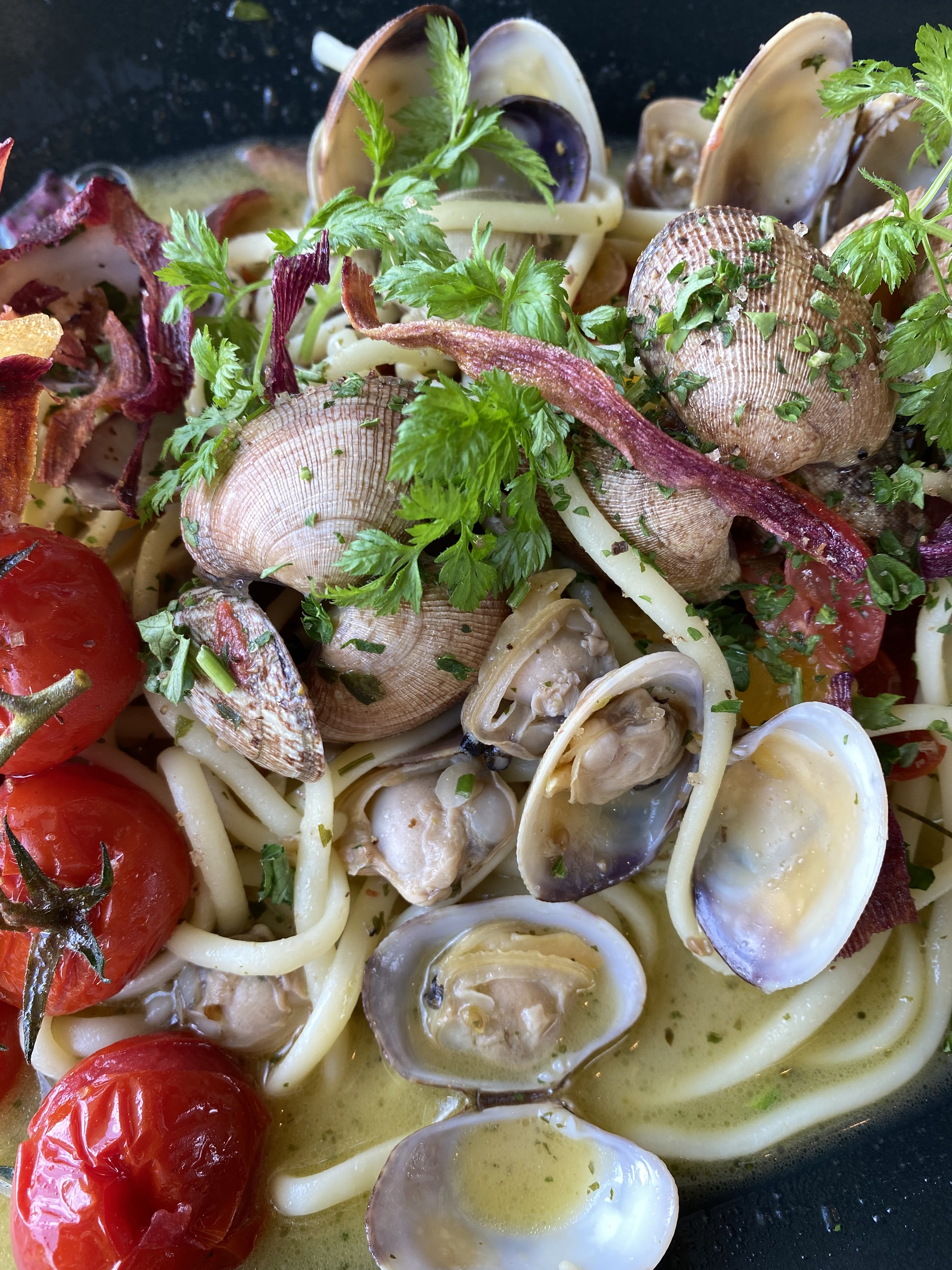 Nius avons passé un très bon moment sur la terrasse du restaurant, face au soleil et protégé du vent par une vitre. Les huîtres étaient excellentes. Les pâtes aux fruits de mer (alle vongole) étaient bien garnies. Par contre, tres déçu des spaghettis qui étaient visiblement tout juste sorties d'un paquet Panzani alors que je m'att6 à des pâtes fraîches. Ce n'était peut être pas le cas mais c'est ce que j'ai ressenti... Nous reviendrons une prochaine fois pour voir si c'était seulement une petite anomalie.