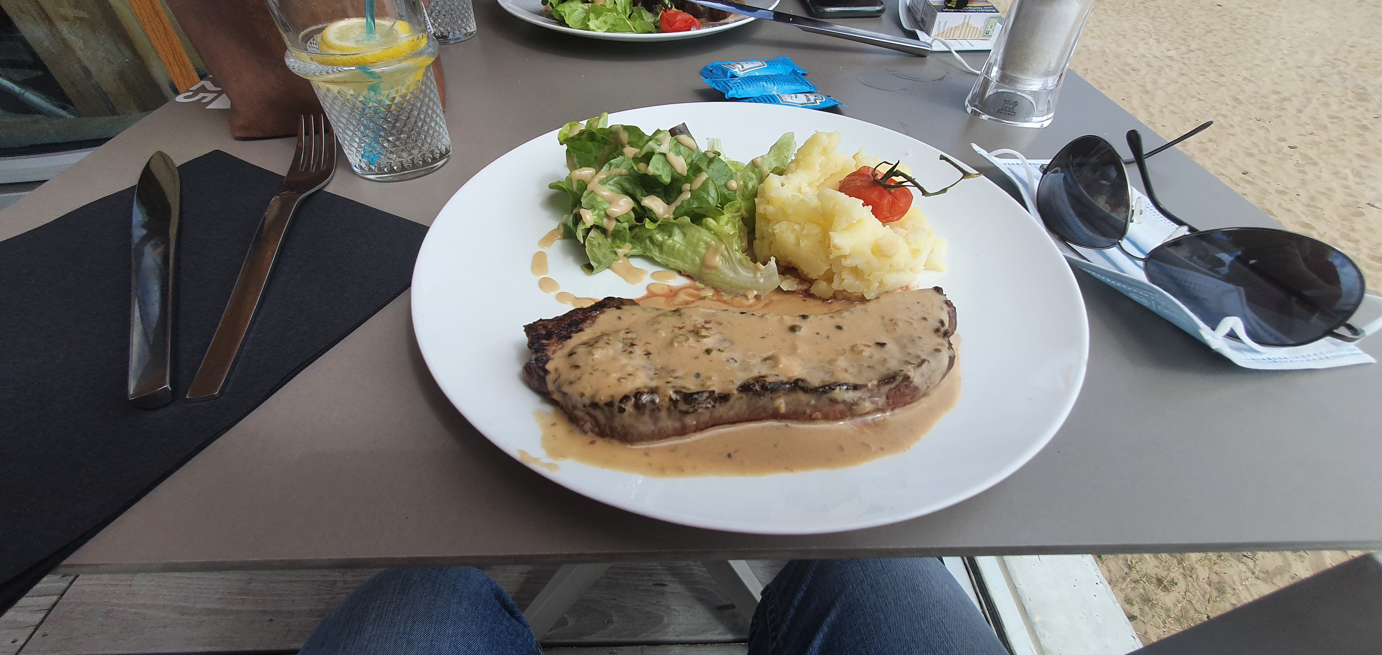 Le repas était plutôt bon, malgré la cuisson de la viande non respectée. Cela dit il reste comme un goût amer car le service était beaucoup trop long alors que nous étions en plein soleil !! Nos boissons étaient soit finies soit trop chaudes sans pouvoir en profiter avec l'entrée ou le plat... Même en recommandant....Au final nous sommes déçus car au vue du prix assez exorbitant nous aurions apprécié un meilleur service et une meilleure qualité.. C'est bien dommage...