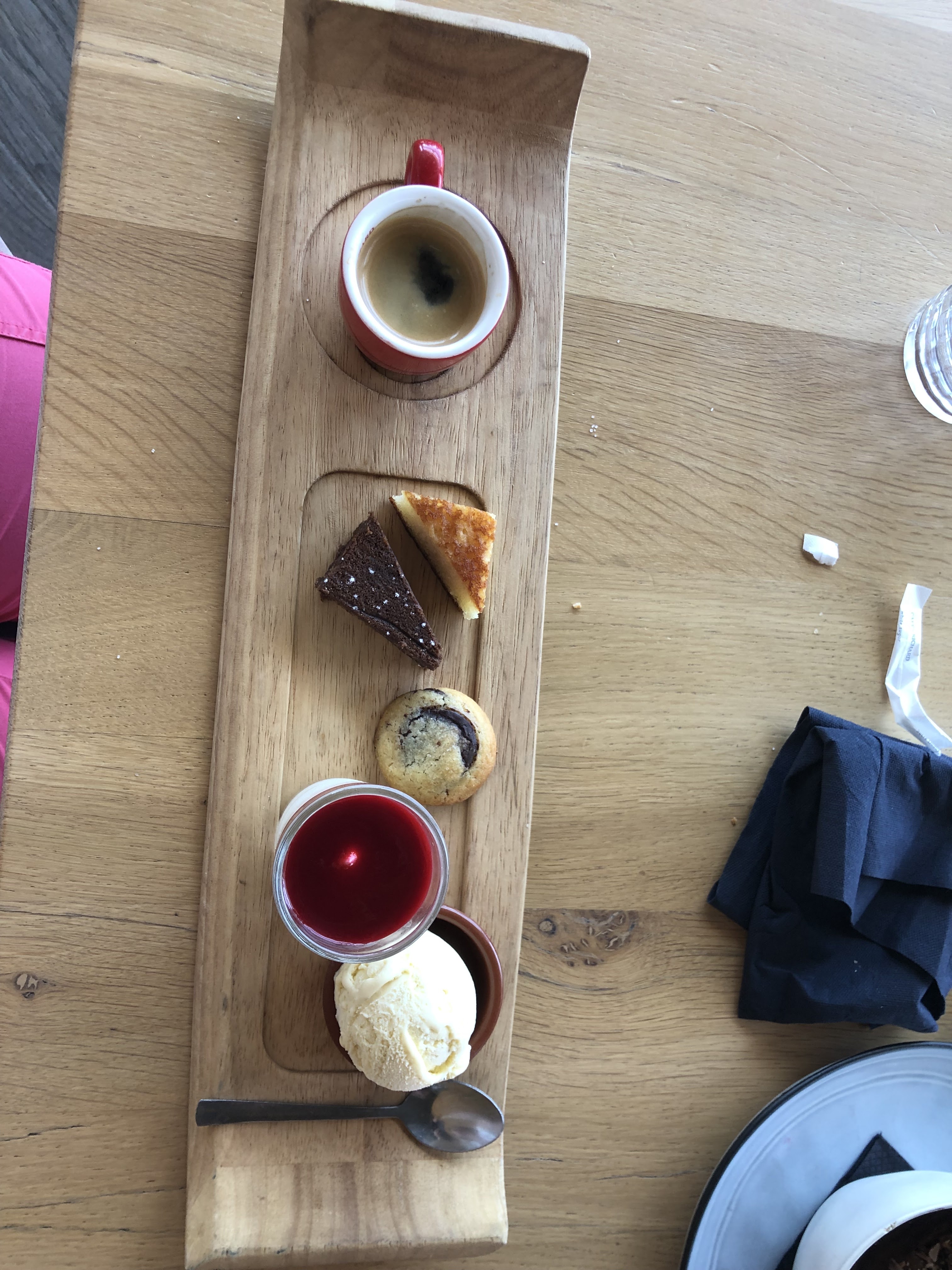 Entrées très bonnes (accras, ceviche, houmous, arancini), plat (poké Bowl saumon) manque de goût, filet de bœuf froid, les pâtes à la truffe très bonnes, le thon très bon. dessert (café gourmand) pas mal mais rien d'extraordinaire, le tiramisu très bon.