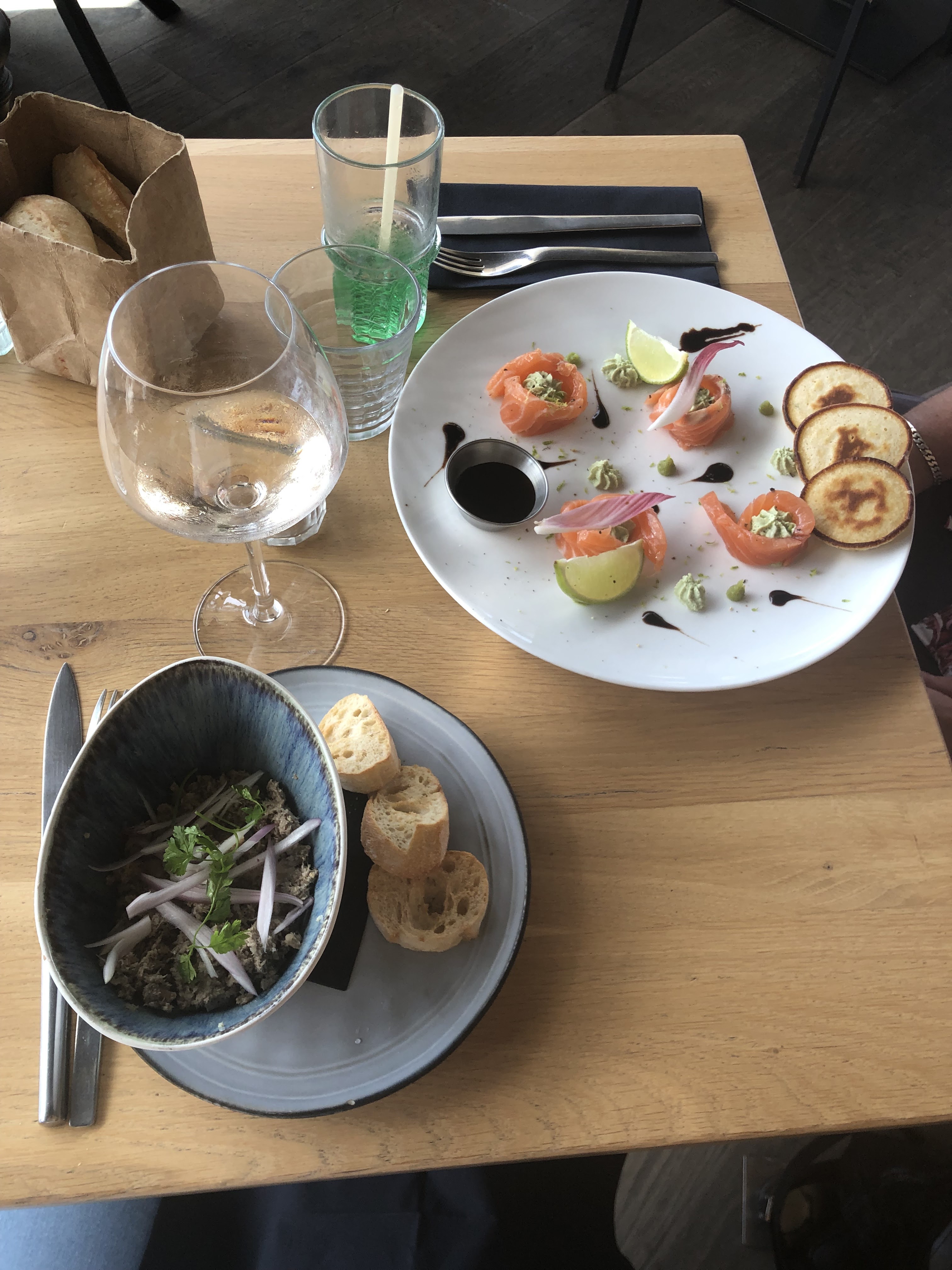 SUPER ENDROIT !!! Nous y sommes allés un peu par hasard un vendredi soir pour boire un verre et nous avons été conquis par l'endroit. On est même revenu le samedi midi et soir pour y manger. L'accueil est très bien, l'ambiance est bonne et le service est impeccable. Ils désinfectent les tables après tout départ de clients et respectent les règles sanitaires. Leur carte propose plusieurs choix de tapas, je vous conseille le poulpe et la rillettes de poisson entres autres. Il y a quelques plats et ils sont super bons, les produits sont frais et bien travaillés. Il proposent aussi des salades. Les serveurs vous préviennent qu'elles sont copieuses ce qui évite de prendre trop de tapas ;) Les prix sont justifiés au vu de la qualité des produits, du restaurant et du cadre. Je recommande !!!