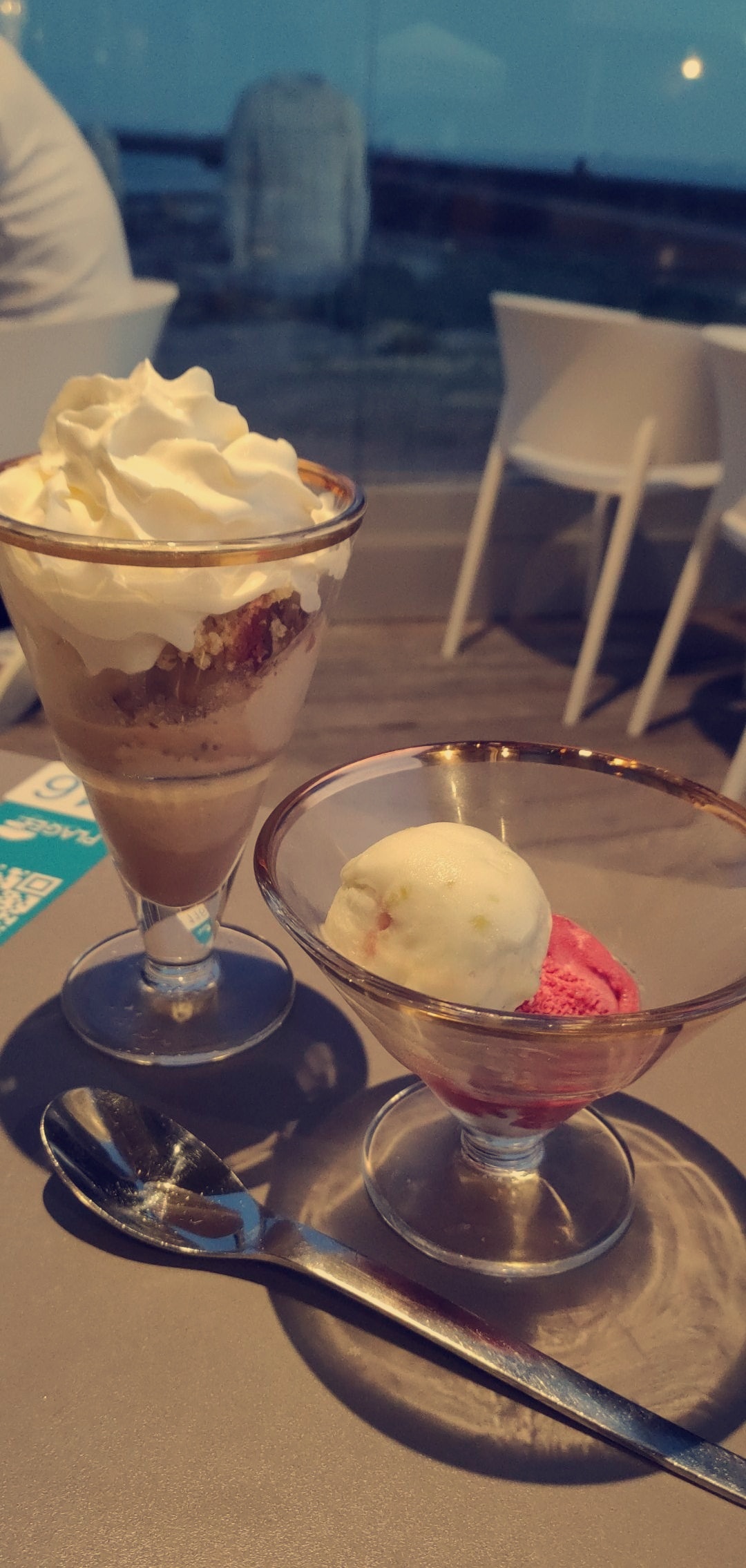Lieu très bruyant. Difficile d'y tenir une conversation. Travaux d'insonorisation à envisager. Dommage puisqu'on y mange plutôt bien et que le personnel est agréable. La table ronde aurait été parfaite pour 5 sans ce problème sonore. La vue sur mer n'était pas grandiose, surtout avec le temps un peu bouché de ce jour là, mais c'est toujours plus agréable qu'une vue sur un espace urbain.