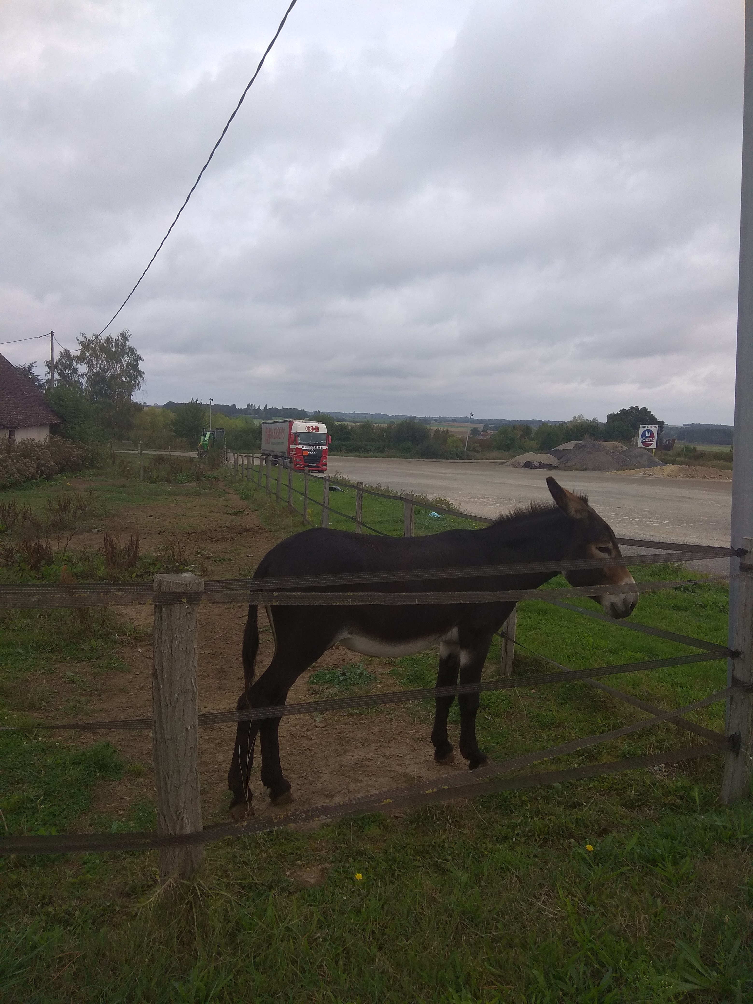 Relais routier français calme. L'esprit de la bonne vieille France plane ici. J'ai payé 12 € de stationnement par jour. Les toilettes et la douche sont gratuites.. Tout est propre et décent.. Il y a un âne qui brout à proximité dans la clôture.. J'ai été satisfait de tout.. Je le recommande.