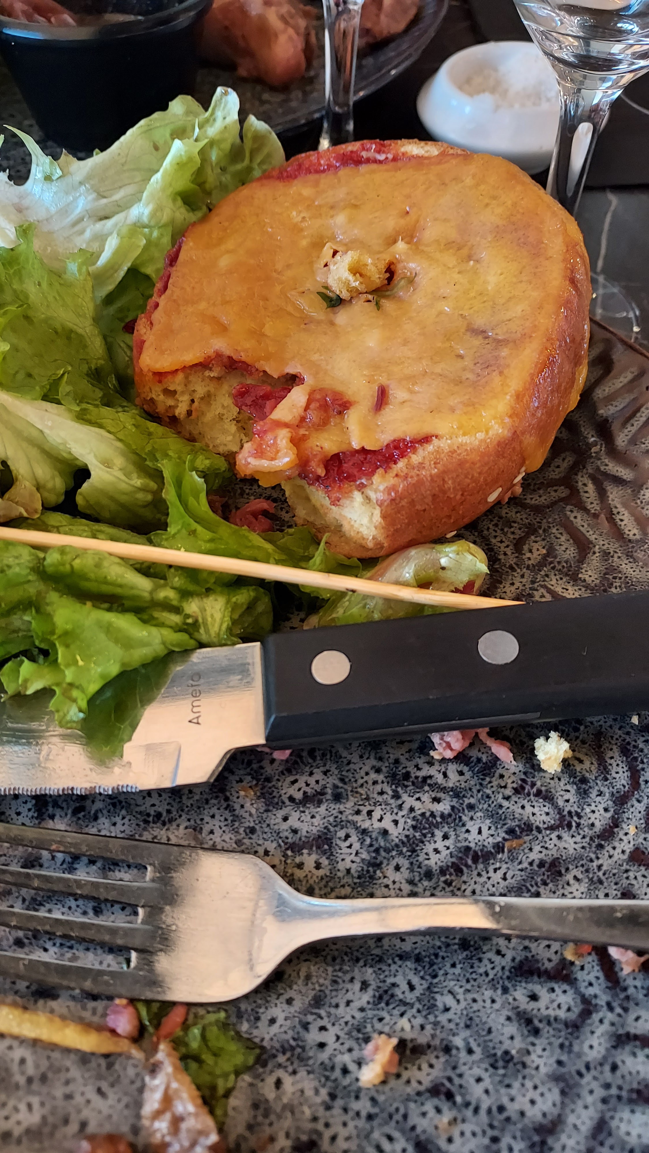 2h pour manger une entrée et un plat ...c'était un lundi ...service extrêmement long ...(le restaurant n'était pas complet)mon mari a pris une entrecôte cuisson saignant nous l'avons renvoyé car trop cuite ...elle et revenue encore plus cuite ...aucune excuse...nous avions l'impression de déranger la serveuse (aparament responsable) elle n'est pas dutout joviale avec le client ... Nous sommes d'ici et nous ne reviendrons pas ...