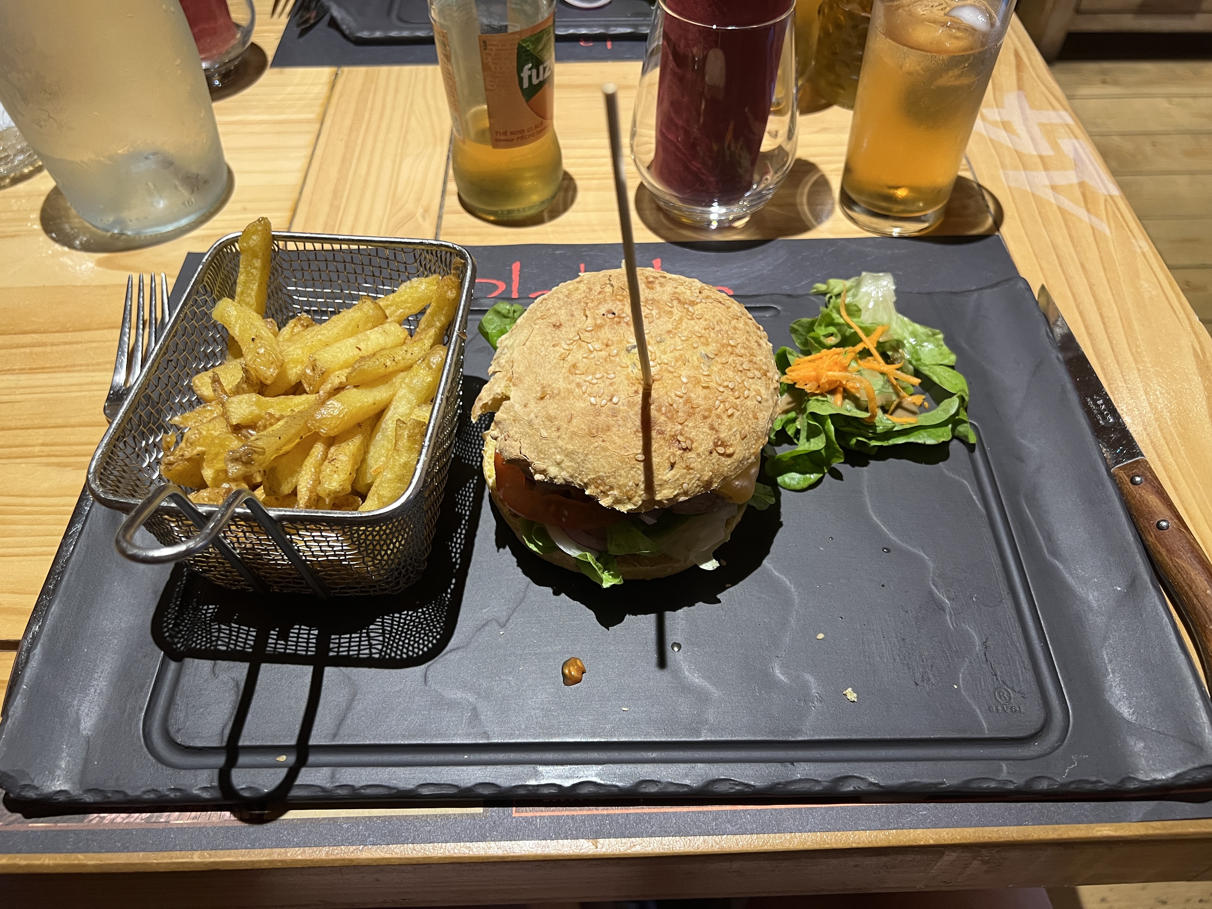 restaurant dans une ambiance chalet très agréable, un assez grand choix à la carte et les burgers sont excellents. Produits maisons et frais il n’y a rien a dire ça fais du bien car ça devient rare ! personnel sympathique et bonne ambiance nous reviendrons ☺️