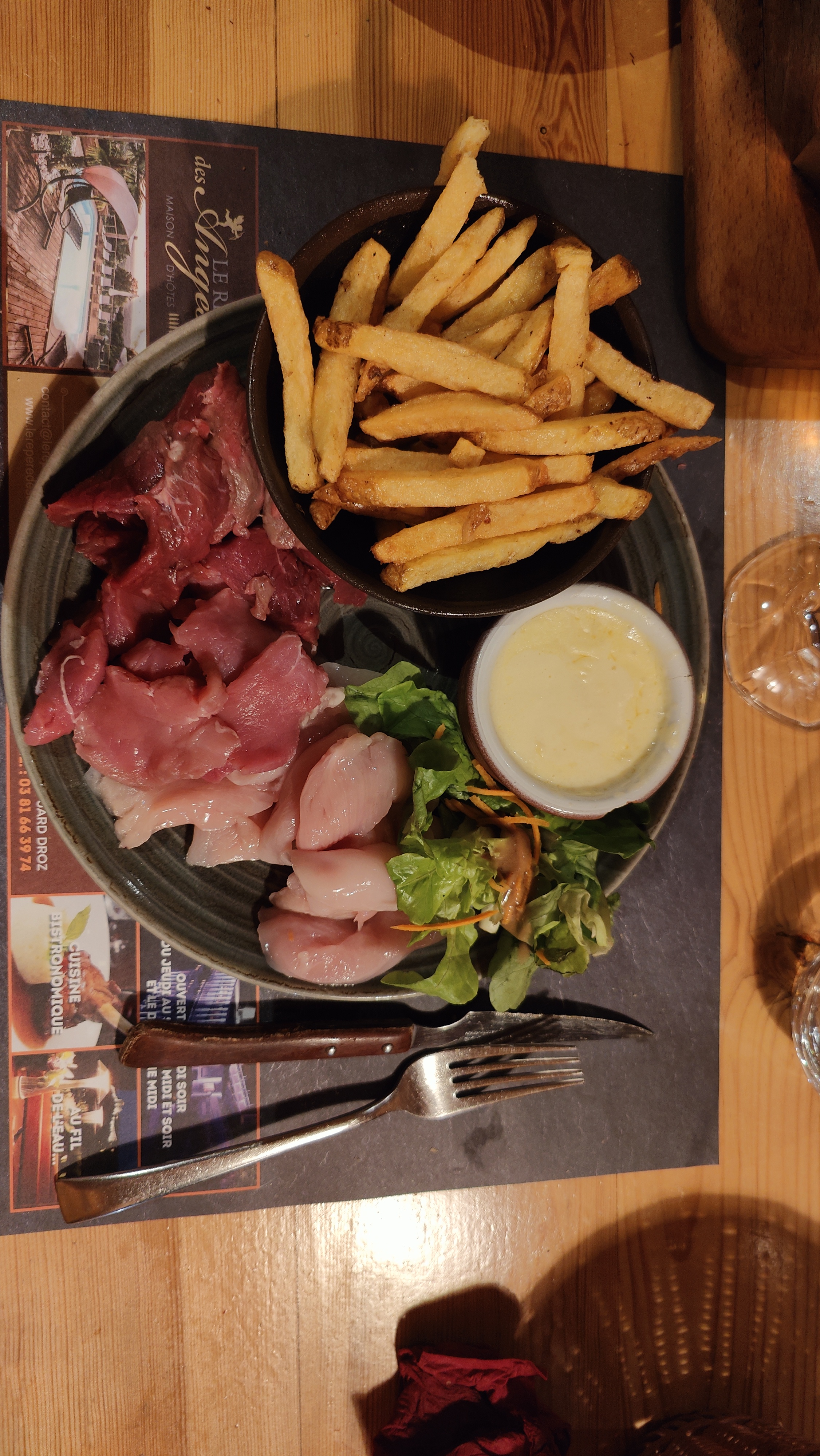 Très bonne formule à 20,90€. 3 viandes à volonté et accompagnement. Pour moi ce fût le gratin et je me suis régalé. Service agréable et direction accueillante et souriante. Le Jura ça vous gagne.