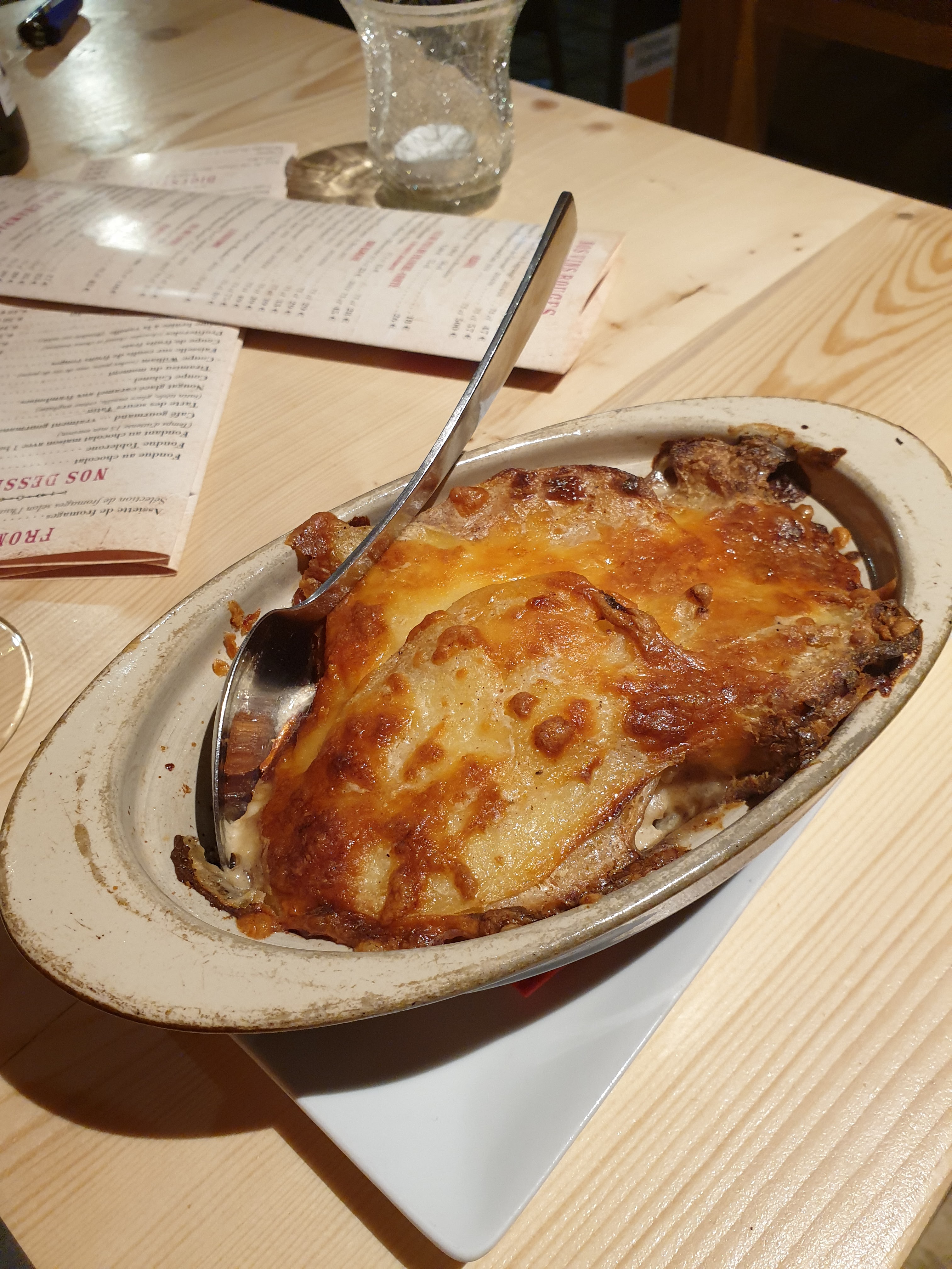 Une véritable aberration… il m’a été servi un gratin dauphinois périmé de plusieurs jours avec un goût infâme et acide d’une couleur plus que douteuse. Mais ce n’est pas tout, le soi-disant cuisiner aurait goûté ce fameux gratin dauphinois périmé et a avéré qu’il était excellent…. De mauvaise foi jusqu’au bout en plus de cela… Suite à cela la serveuse m’a amené un gratin fait (minute) qui lui était bon. Mon ami ayant commandé le même gratin infecte que moi j’ai pu de ce fait prendre une photo je vous laisse en juger par vous-même. Par chance je ne suis pas tombé malade dans le cas contraire, je me serais pas privé de porter plainte car nous venons au restaurant pour passer un bon moment et manger de la bonne nourriture et non pour repartir avec une intoxication alimentaire.
