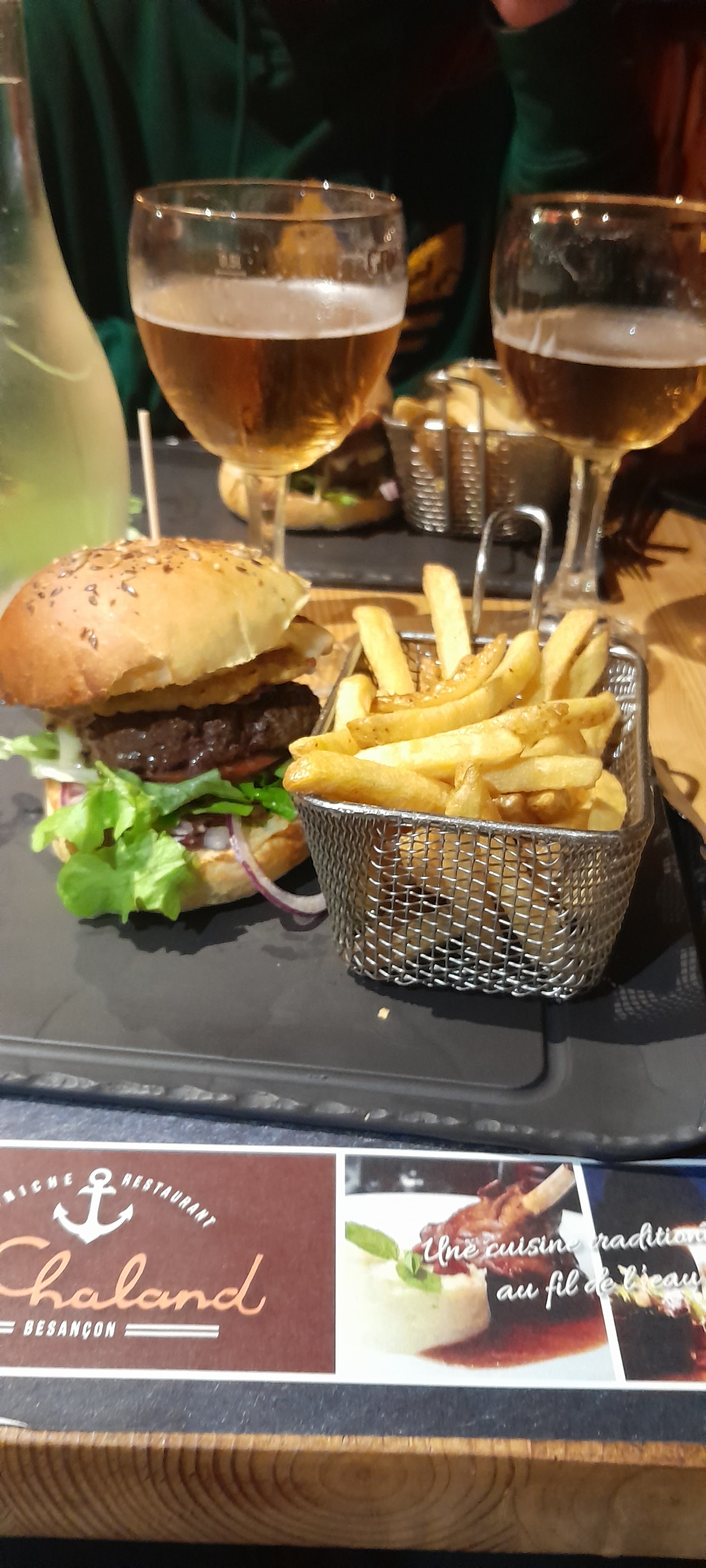 Nous avons mangé hier soir dans ce restaurant. La décoration et l’ambiance de la salle est vraiment bien, on n’a pas l’impression d’être au milieu du centre-ville de Besancon mais plutôt dans un chalet dans les montagnes. Les burgers sont très bons et très gourmands. En revanche, le service était lent. Nous avons attendu 20 minutes pour qu’on nous débarrasse. Ensuite la serveuse nous a amené la carte pour les desserts et là ! Rebelote ! 15 minutes à attendre avec les cartes des desserts. Conclusion nous sommes partis sans prendre de dessert. C’est alors un avis mitigé, les plats sont bons et gourmands en revanche pour les desserts impossible de dire s’ils sont bons.
