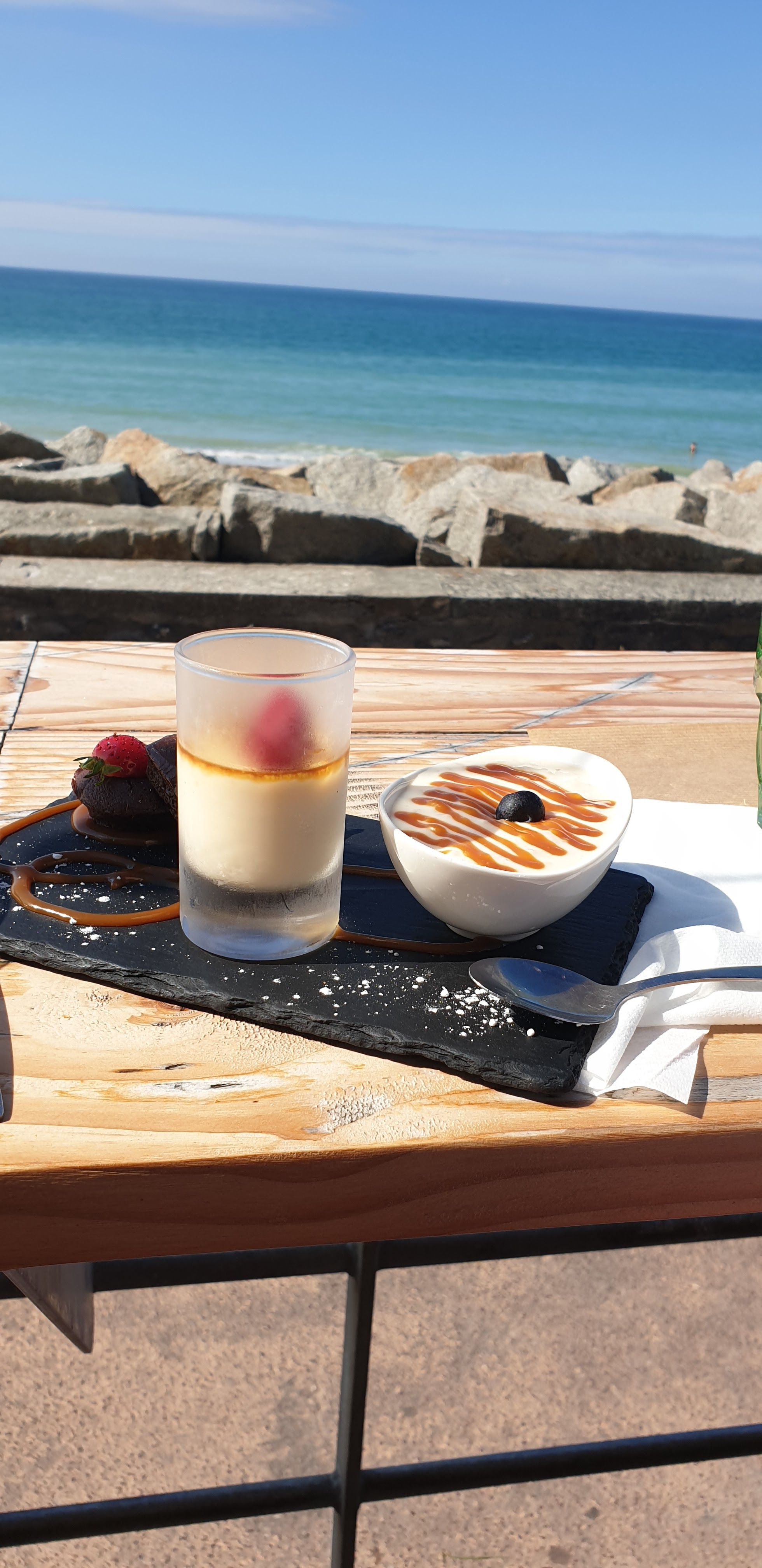 Génial ! On s'est arrêté au hasard par ce que le cadre était beau. Nous avons été très bien accueilli. Nous avons eu un peu peur au début, car a côté de nous un groupe de personnes très joviales mais très bruyantes occupait l'espace sonore ! Mais il sont parti rapidement et nous avons pu profiter des lieux, de la mer, du sourire de la serveuse, des beaux yeux du serveur, en dégustant des plats excellents! T-Bone tendre et goûtu, moule bouchot copieusement servie nous avons si bien mangé que nous avons fait un impasse sur le dessert ce qui n'est pas notre habitude !