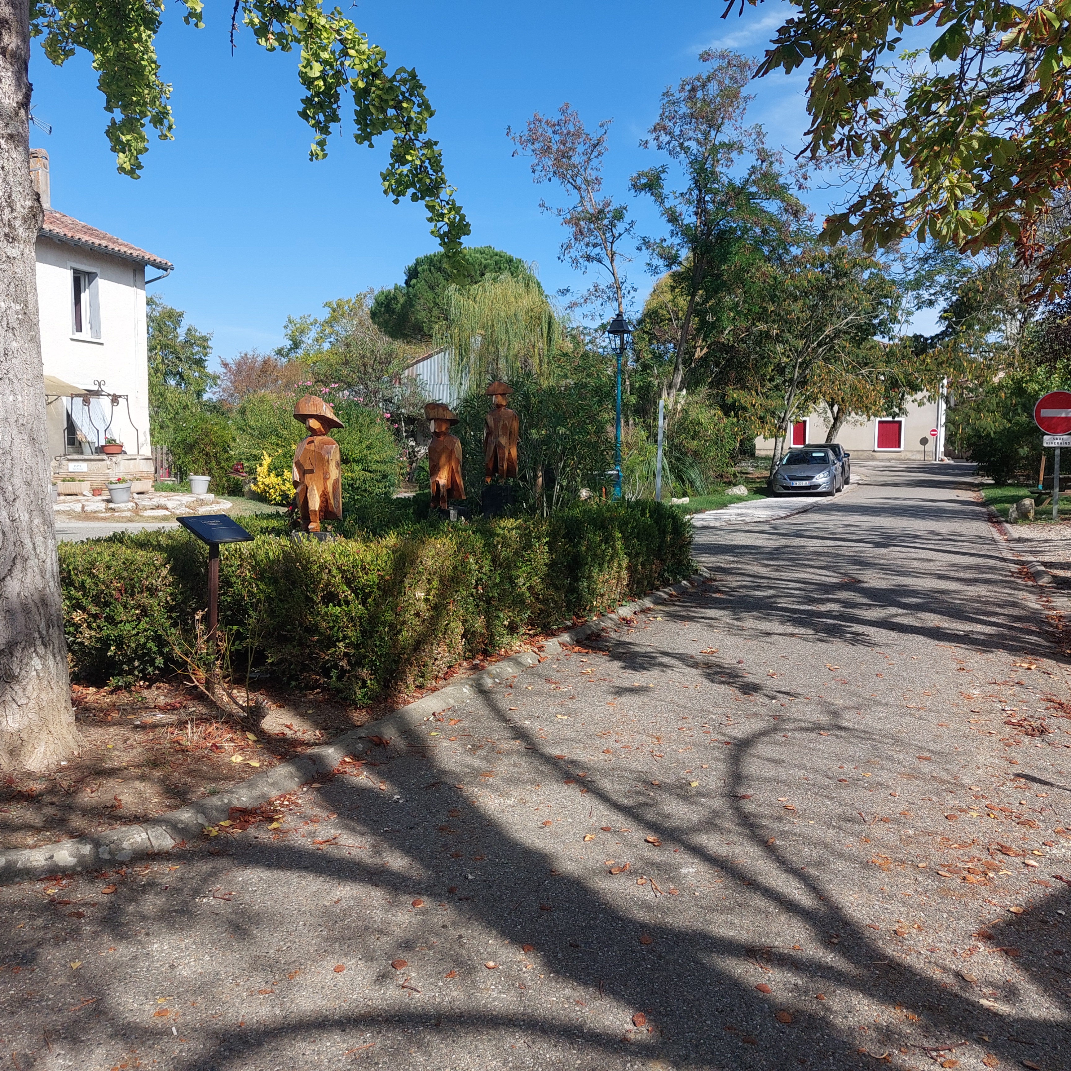 Pèlerines logées au gîte communal, nous y avons déjeuné et dîné. C'était parfait ! Tables à l'ombre sous de grands arbres, des plats excellents, un super rapport qualité/prix et la gentillesse du patron qui nous a offert petits pâtés et cafés. Un super moment sur le Chemin de Compostelle