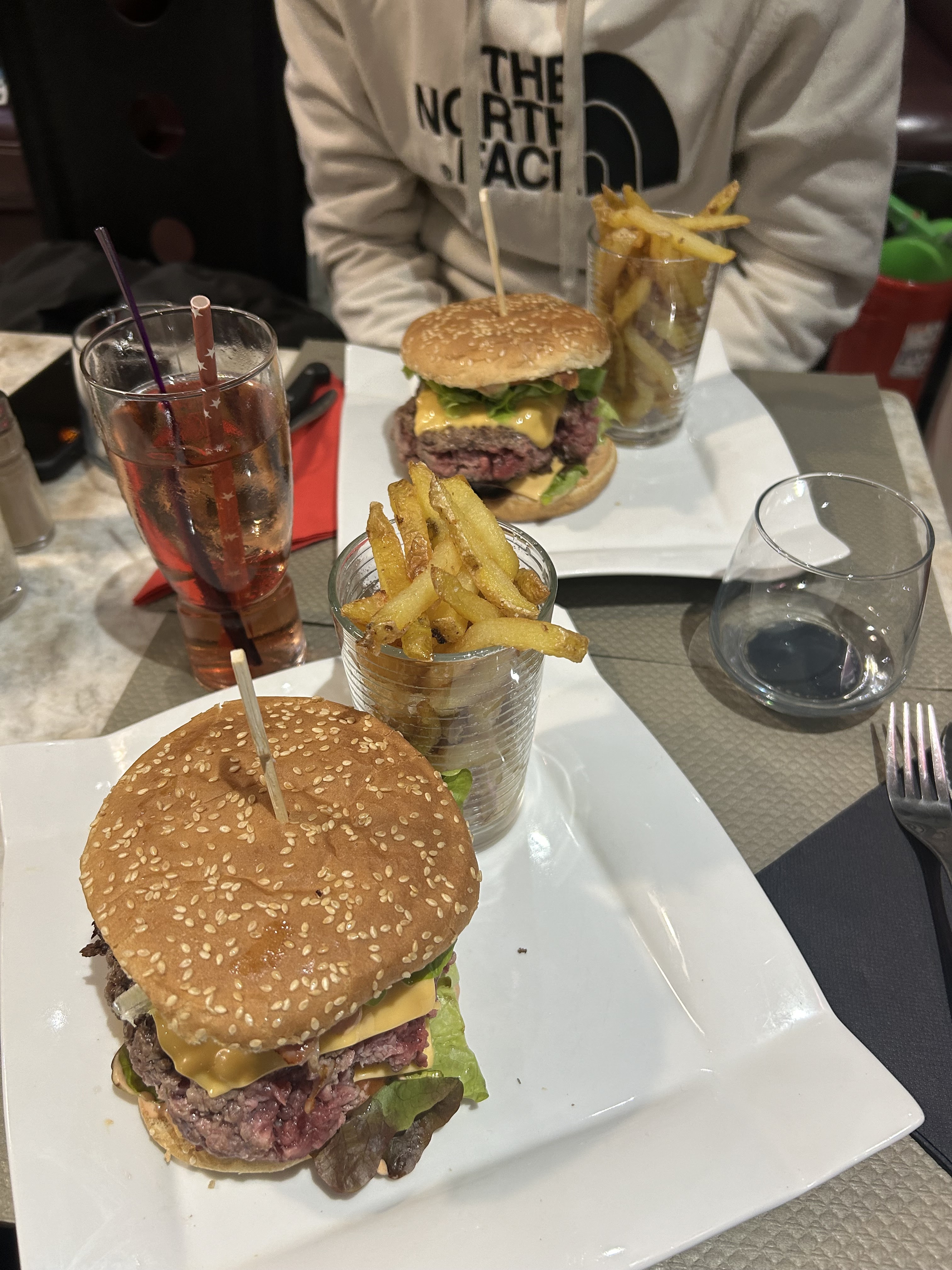 Restaurant à moderniser, les dossiers de certaines chaises sont cassés. Personnel assez sympathique, mais nous ne sommes pas là pour la nourriture. La salade au chèvre était plutôt bonne, mais les frites étaient mal frites, pleines d'huile et pas croustillantes, et le burger était plein d'oignons et la viande était haute et mal cuite ; J'ai demandé qu'il soit cuit saignant, il est arrivé cuit dessus et dessous et au milieu ça ressemblait à un tartare. Prix conformes à ceux des autres restaurants du quartier, mais trop élevés pour ce que j'ai mangé.