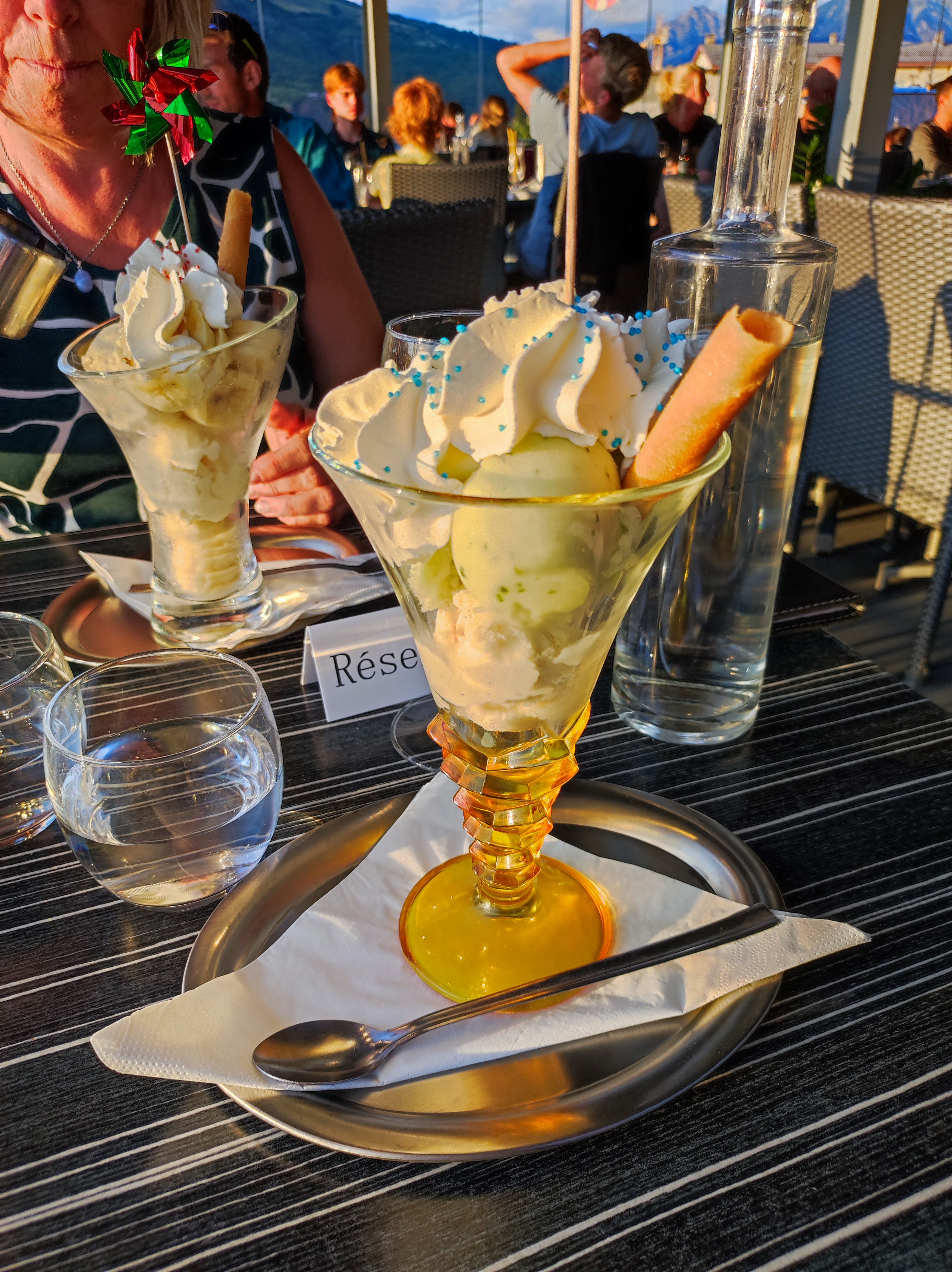 Nous avons eu l’occasion de manger plusieurs fois dans ce restaurant avec nos enfants. Tout d’abord la vue panoramique sur le lac est magnifique ! 😍 la formule buffet à volonté au top avec produits locaux, ou plats à la carte délicieux ( tartare de bœuf, boite chaude, pâtes carbo..) Pour finir des glaces à tomber par terre ! Elles sont artisanales ( petit bémol pour l’ananas basilic et la brownie ! 🤤) et la chantilly est délicieuse ! Les serveurs sont très accueillants et agréables ! Merci pour ce bon moment ! On reviendra c’est sur !