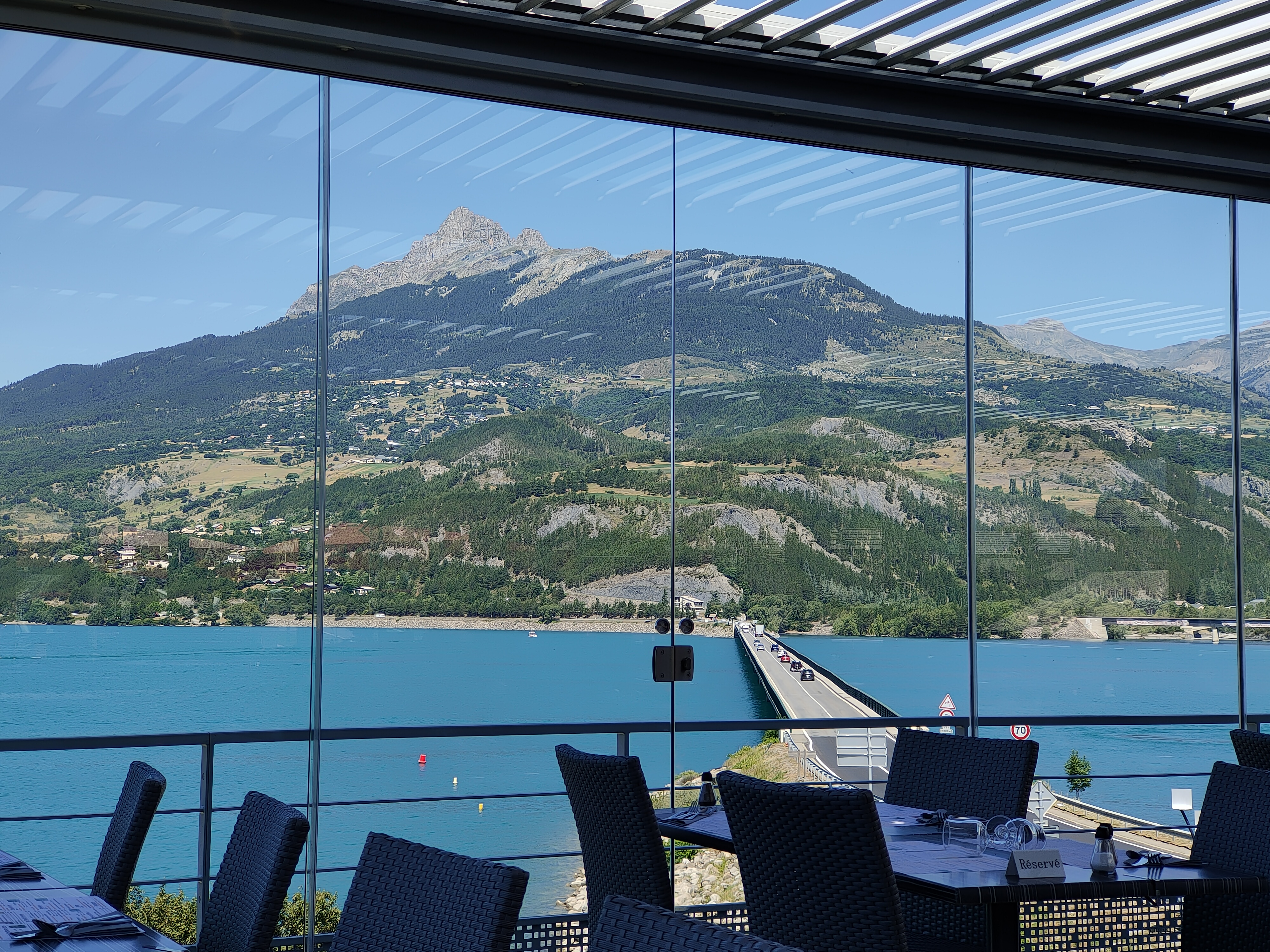 Beau cadre..vue à 360° sur le lac de Serre Poncon , repas excellent bon rapport qualité prix, nous recommandons ce restaurant..