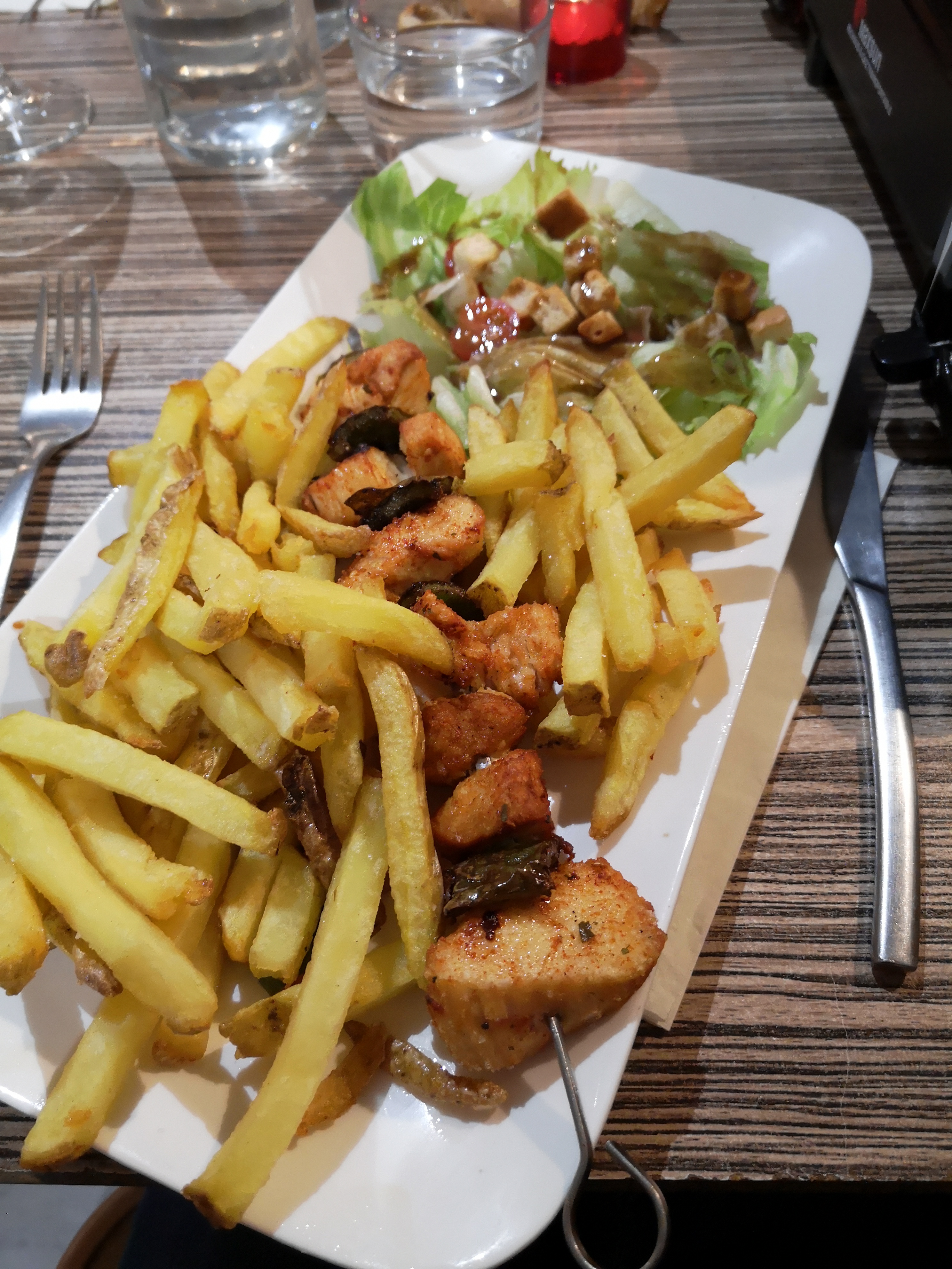 J'ai passé une super soirée, la planche Tapas XL était idéal en apéritif pour 4 personnes, très généreuse je me suis régalé. Quant au plat, j'ai opté une brochette de poulet au curry et je n'aurai pas pu mieux choisir, la viande était moelleuse. Je n'ai malheureusement pas pris de dessert car j'avais déjà suffisamment bien mangé, mais je reviendrai avec plaisir pour les essayer