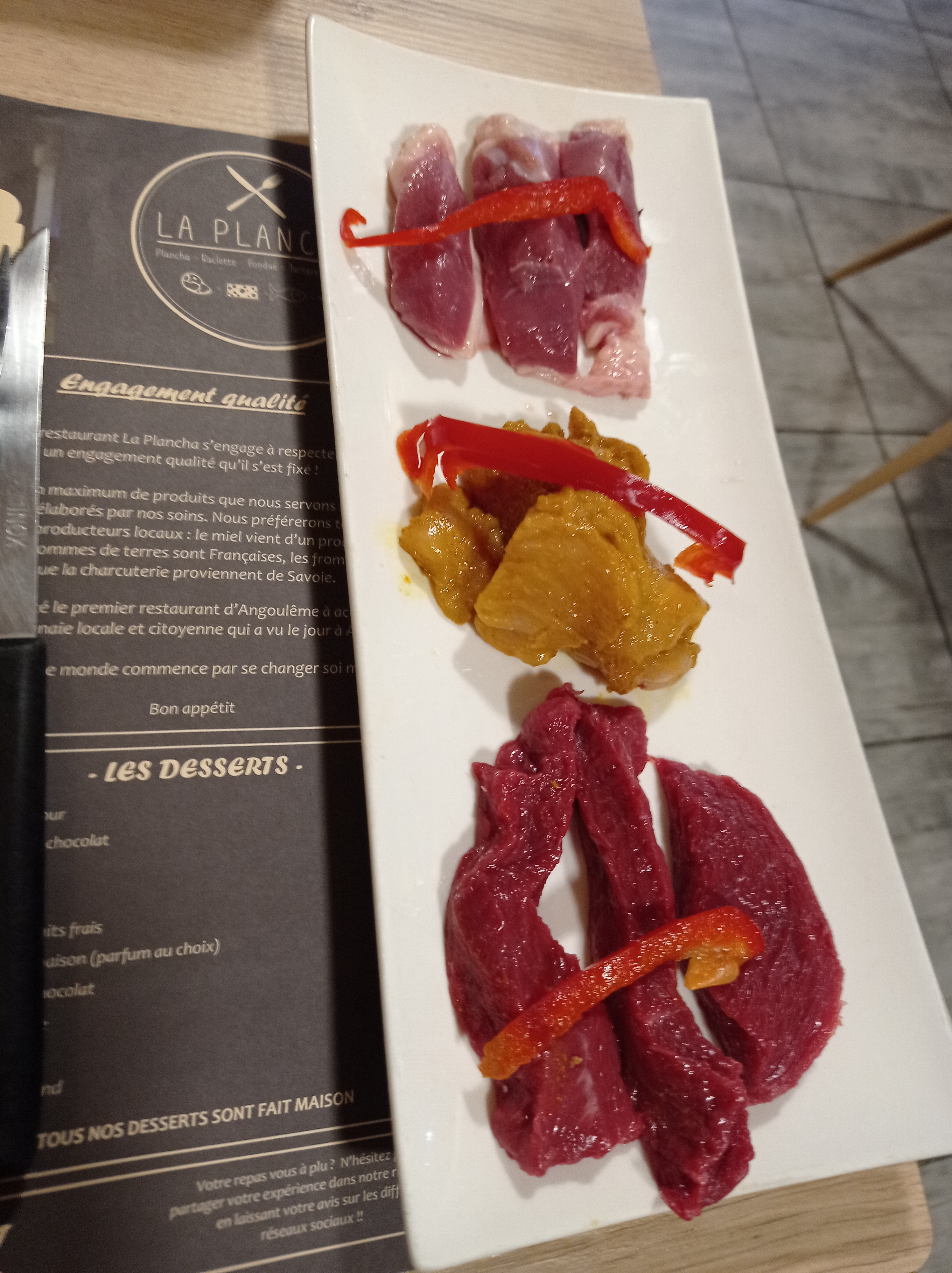 Super restaurant ! De passage à Angoulême avec des amis, nous avons passé une agréable soirée dans ce restaurant qui allie quantité et qualité. Les planchas sont très sympas, de même que la fondue. Les serveurs sont très gentils et disponibles. Il ne faut pas quémander pour avoir de la viande en plus, des frites et de la sauce (sauces périgourdine et roquefort notamment, que je recommande). Une très bonne adresse d'Angoulême !