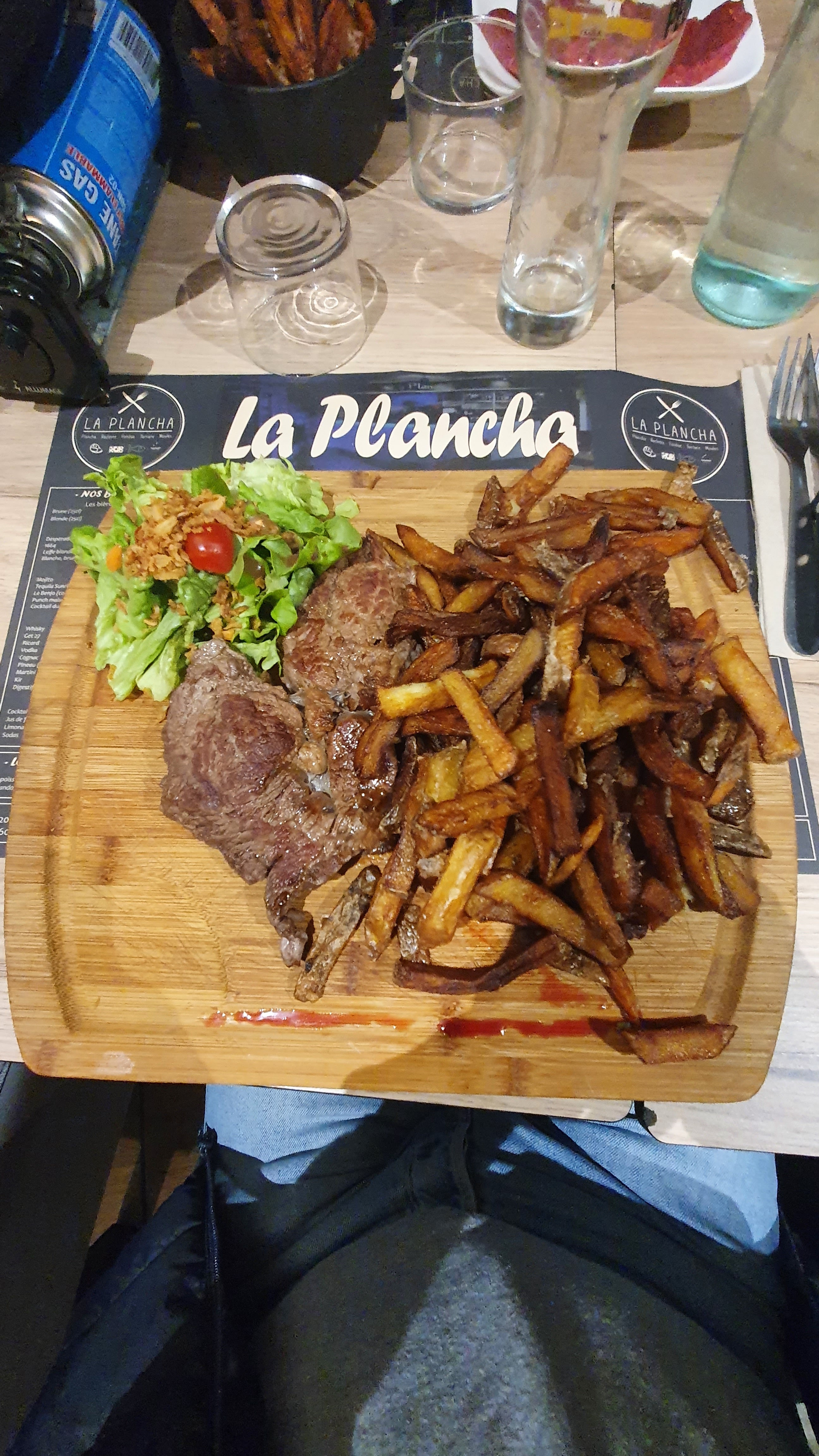 Accueil et service sympathique Quand on prend plancha, c'est moyen en goût et on sent vite le gras (même avec la hotte). Les frites maison sont des moitié de moitié de frites et pas une très belle cuisson. Restaurant très bruyant