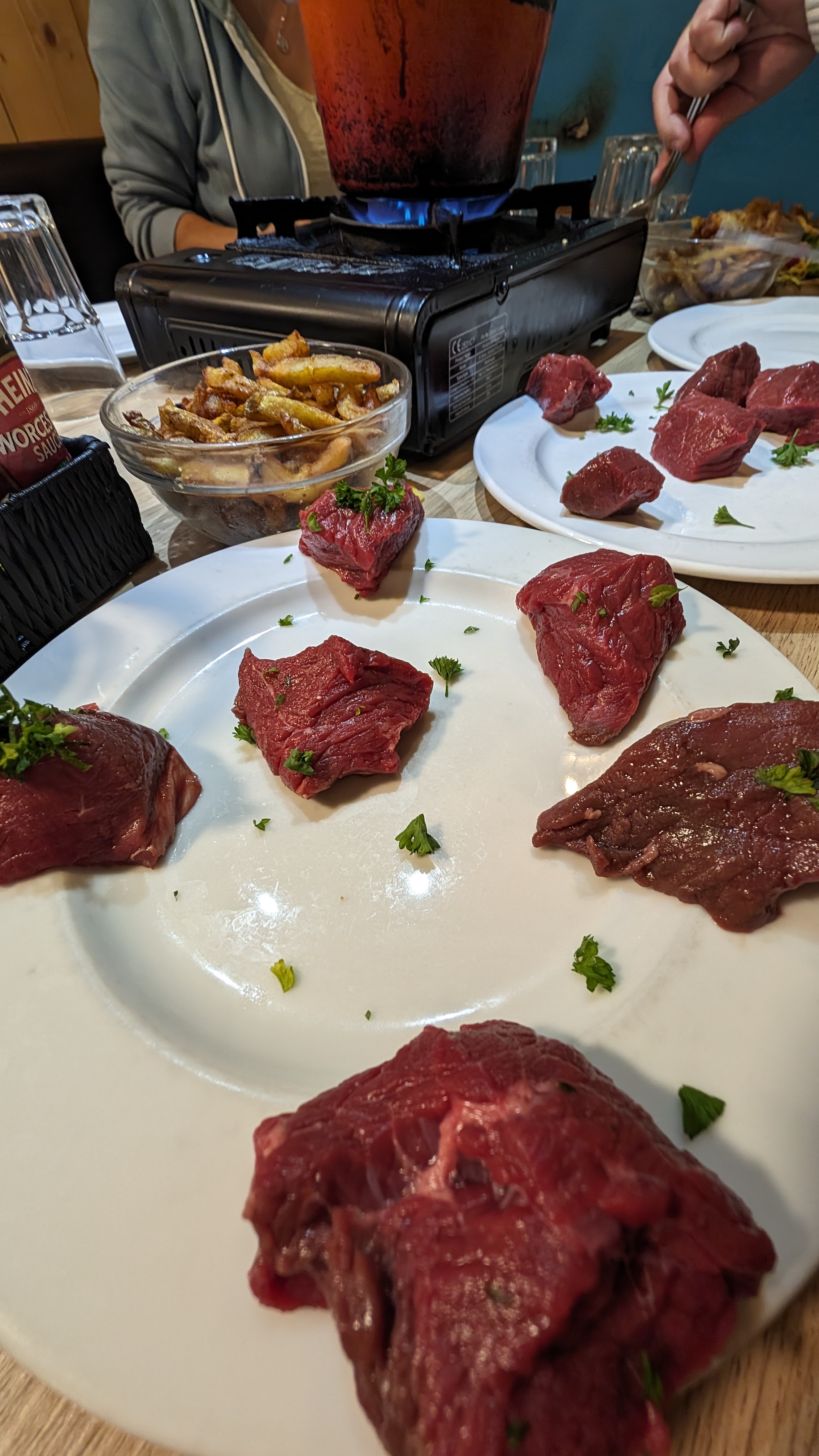 Frites maison valent déjà 5 étoiles, la viande et fromage sont vraiment super bon. Seule manque c’est la sauce bourguignonne pour le fondue bourguignons. Une étoile en moins pour l’état du resto (murs cassés, scotché par si et par la) et déco peu soignée. Sinon pour manger vraiment à recommander!