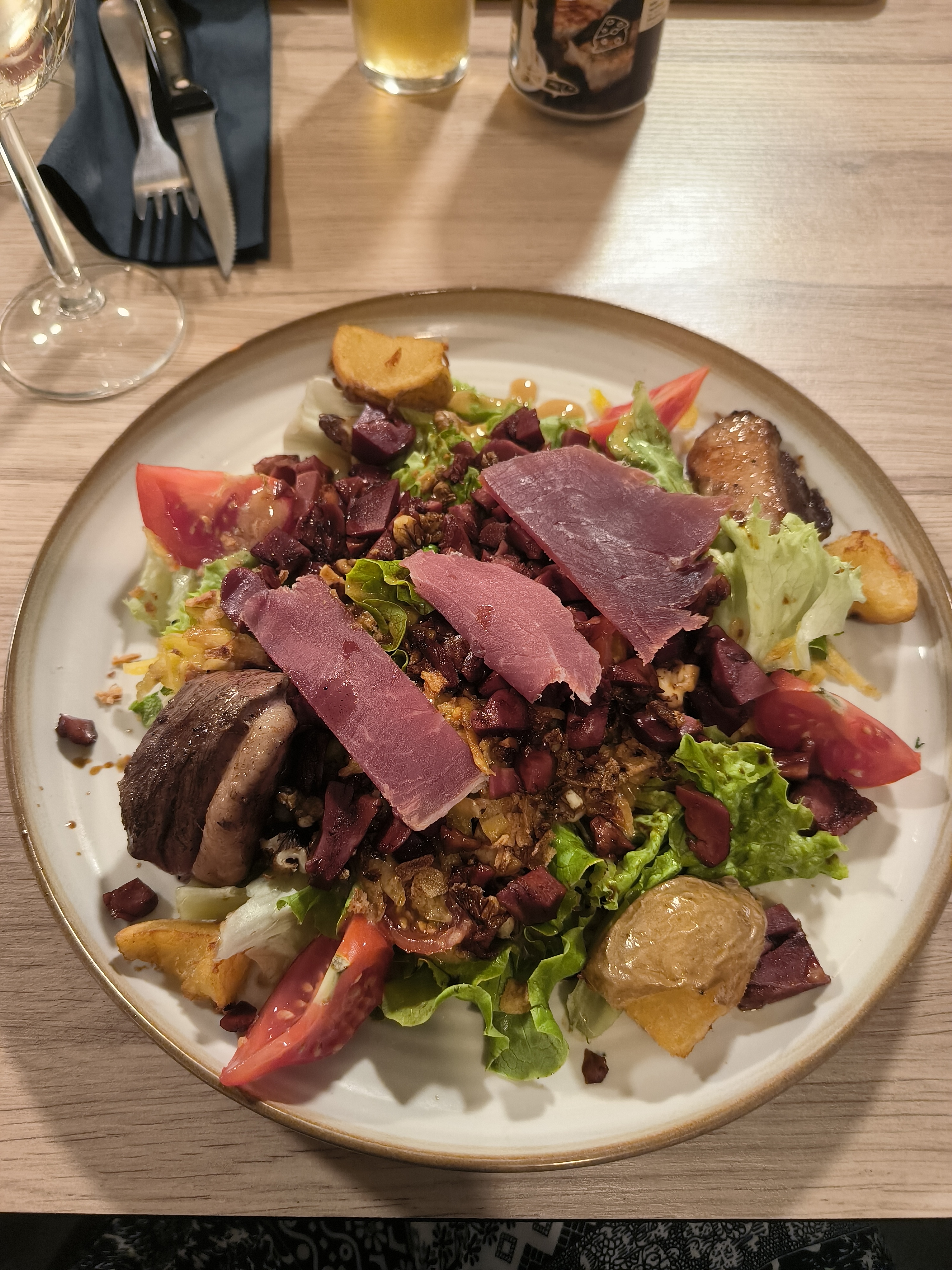 Nous avions pris une raclette, c'était très long à manger mais surtout les patates n'étaient pas assez cuites ou au contraire bouilli en miettes du service d'avant et la charcuterie n'était pas de bonne qualité, le goût n'était pas du tout au rendez vous, ça ressemble beaucoup plus à de la charcuterie de supermarché bas de gamme , je vous déconseille fortement ce restaurant, le service était à peine correcte avec de la musique beaucoup trop forte et avec une serveuse qui coupe la musique pour écouter ses vocaux, ce n'est pas du tout professionnel