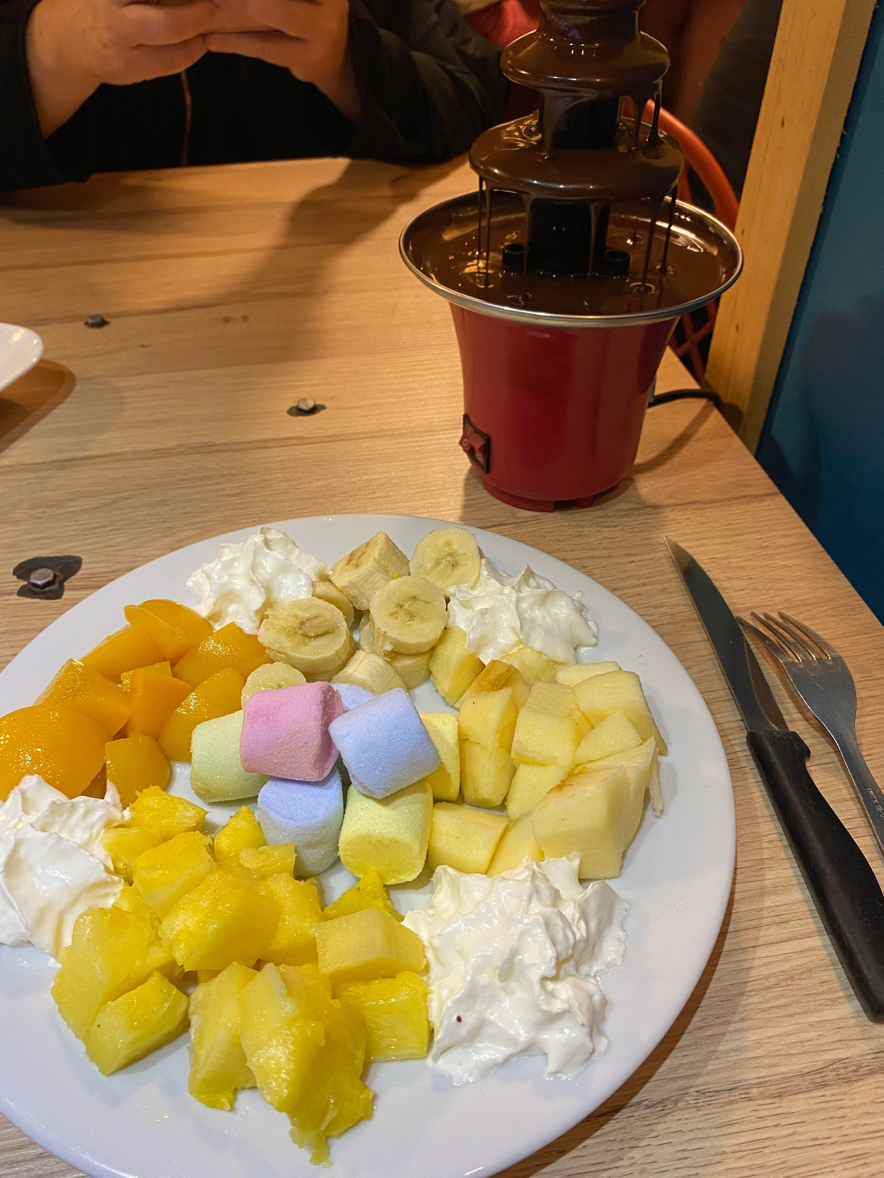 Très bonne raclette à volonté pour seulement 20€ par personne. Le fromage est très bon là charcuterie également. Petit hic sur les appareils qui prennent un temps fou à faire fondre le fromage mais le serveur nous a indiqué qu'il était possible de mettre le fromage à l'endroit où ont met la charcuterie à cuire ce qui est nettement plus rapide. En dessert, fondue au chocolat à volonté encore pour 10€. Très bonne également avec des morceaux de pomme, banane et ananas avec des petits guimauves.
