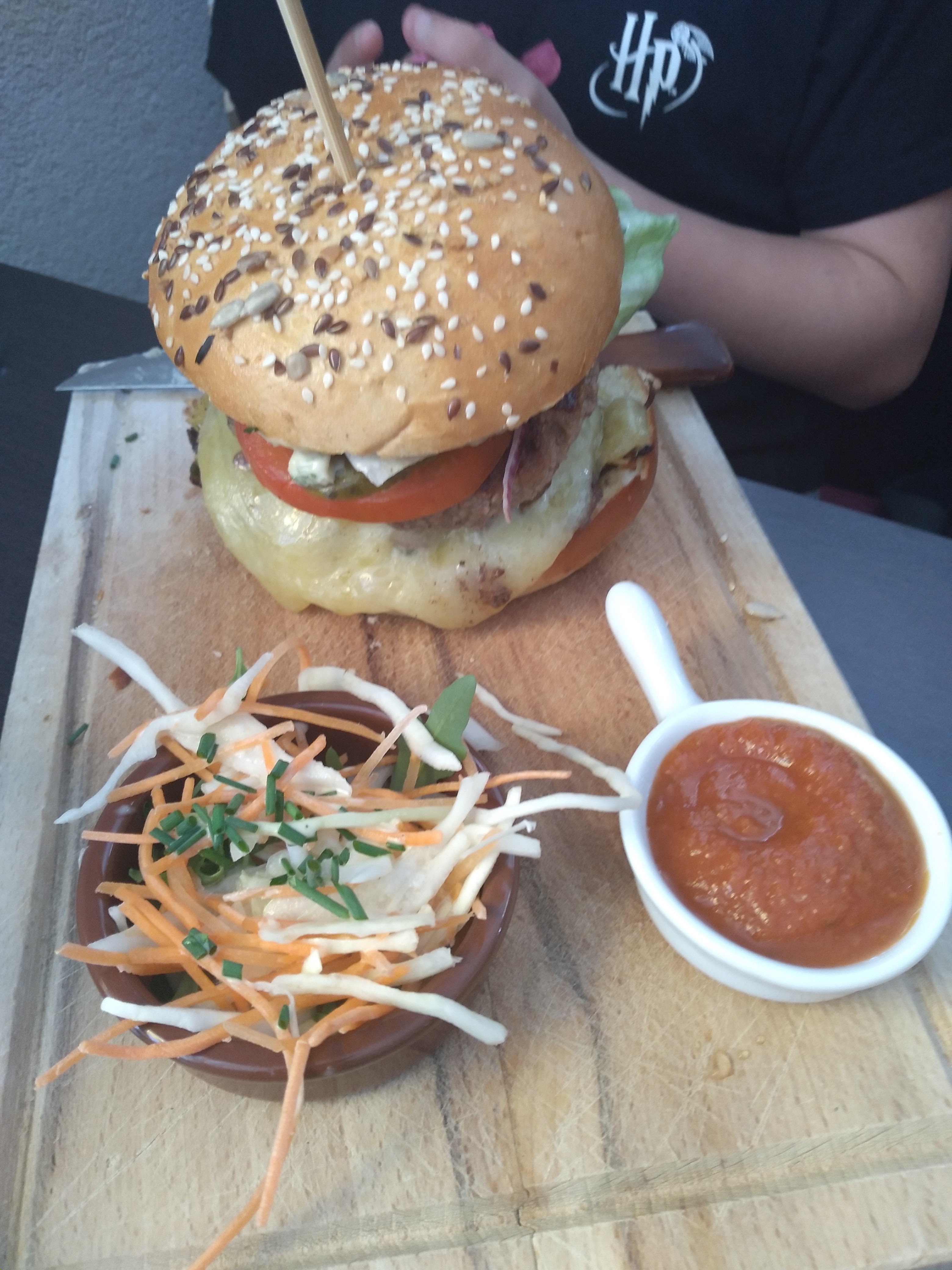 Le hamburger le plus haut de ma vie ! En plus de tous ses étages d'ailleurs, il était succulent. Allez y, vous serez largement rassasié ! 👍