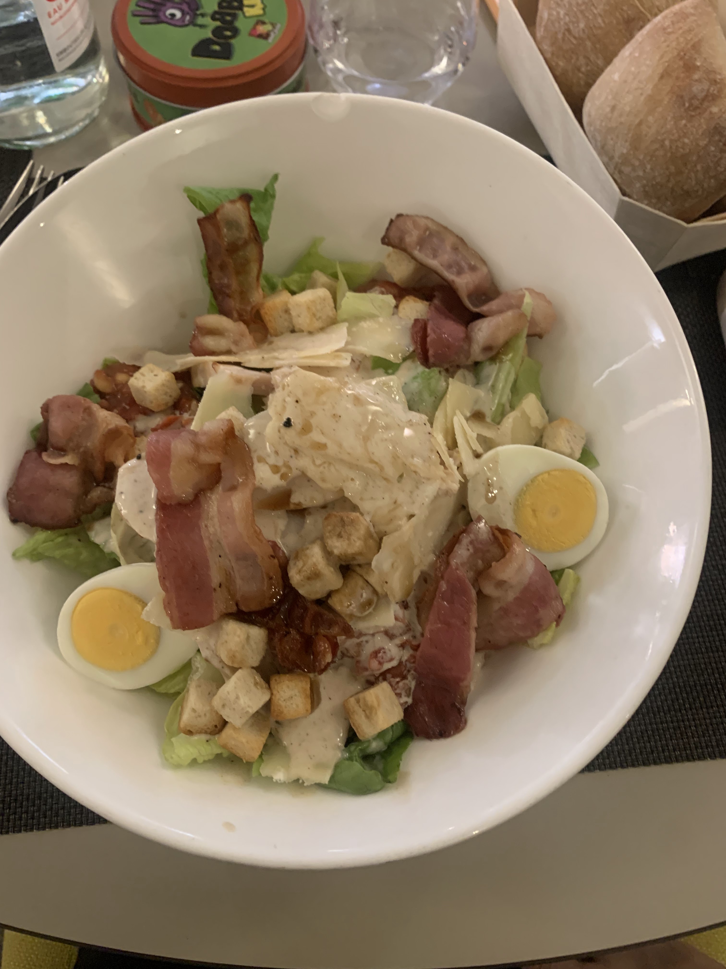 Nous avions réservé une nuit du coup dîner à l'hôtel. Les plats pris étaient très bons : salade caesar et burger. Le serveur était aimable et il y avait une bonne ambiance en cuisine. L'été, la terrasse doit être mise, ce doit être sympa avec la piscine.