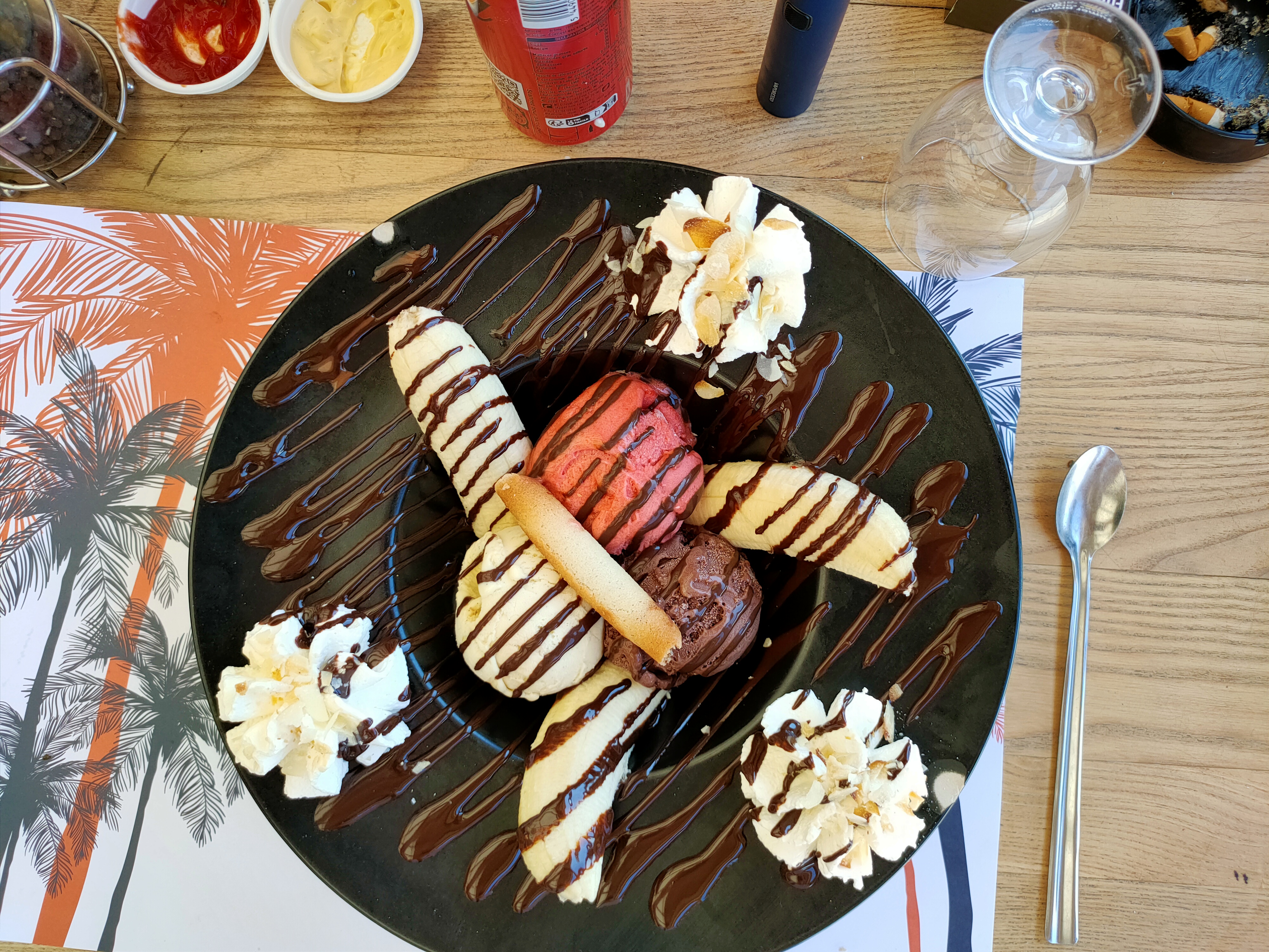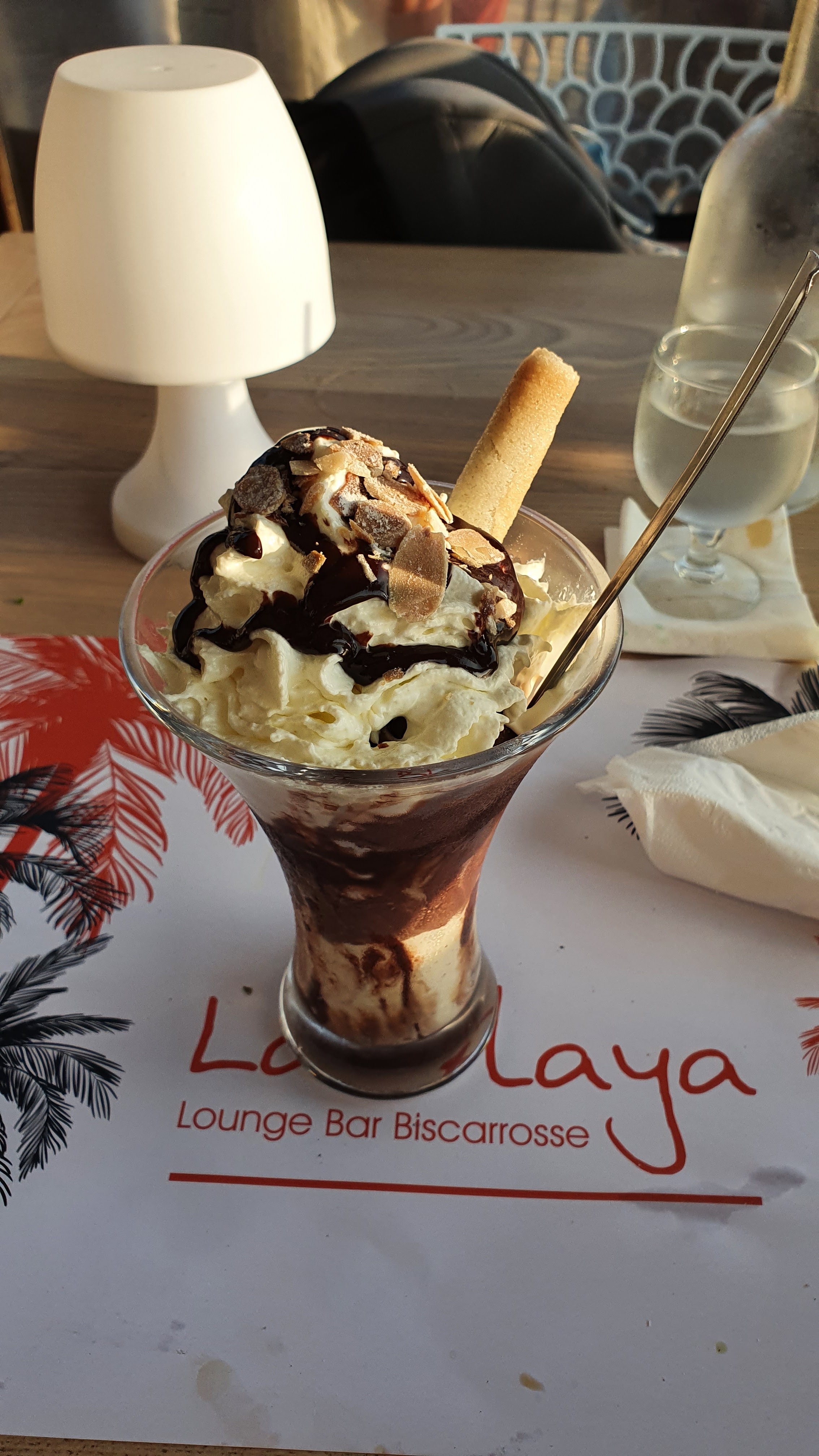 D'un balcon perché au dessus de l'Atlantique, nous voici dégustant nos glaces (2 boules, c'est déjà pas mal !) délicieusement parfumées. Tout est parfait malgré la canicule.D'ici la vue sur l'océan est magnifique. La Playa, bar-restaurant qui surplombe la superbe plage de Biscarosse constitue une belle et bonne surprise !