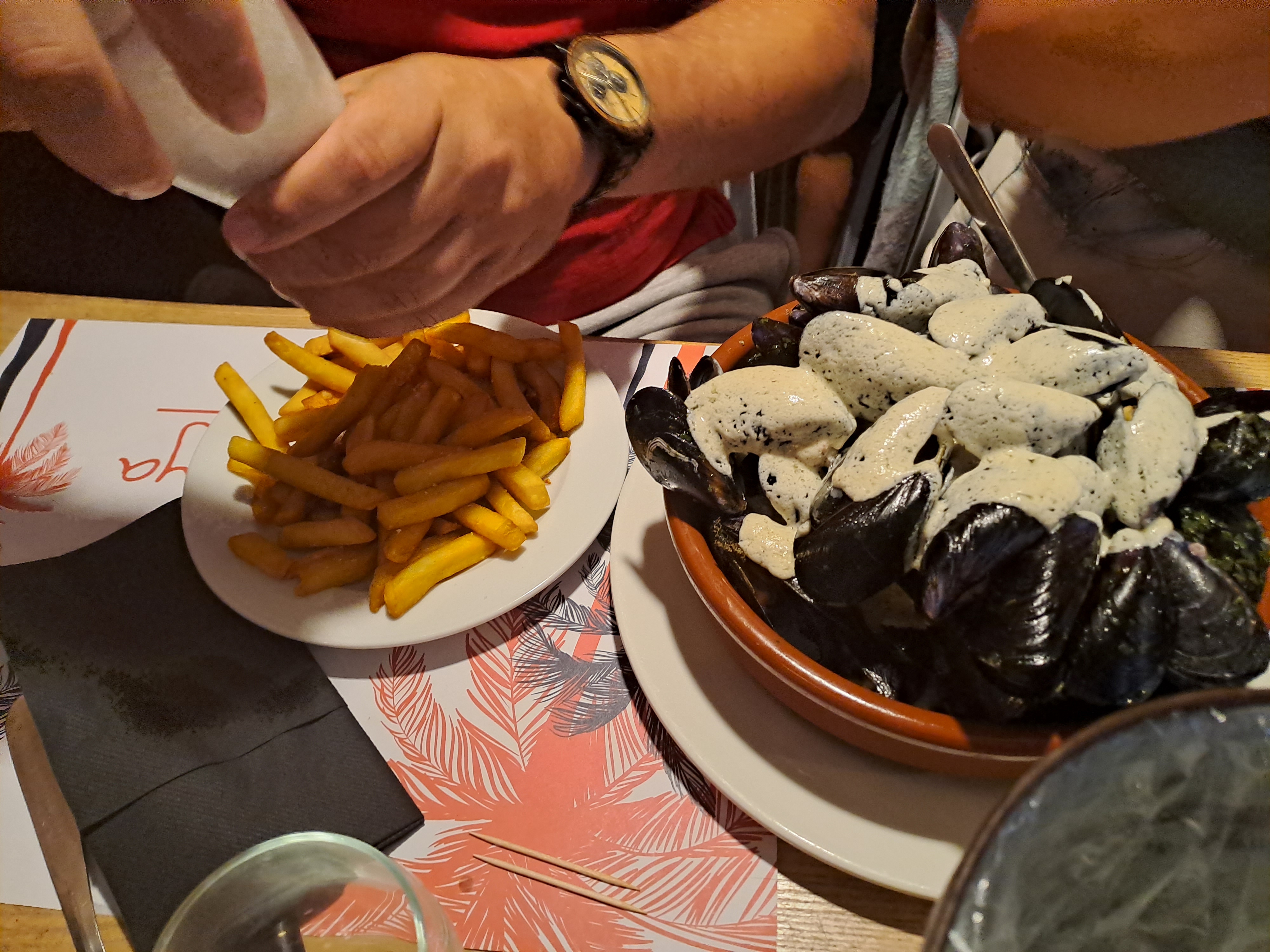 Spot agréable pour y manger, c’était des moules dans notre cas, c’était assez moyen pour être honnête. Le service est agréable et souriant.