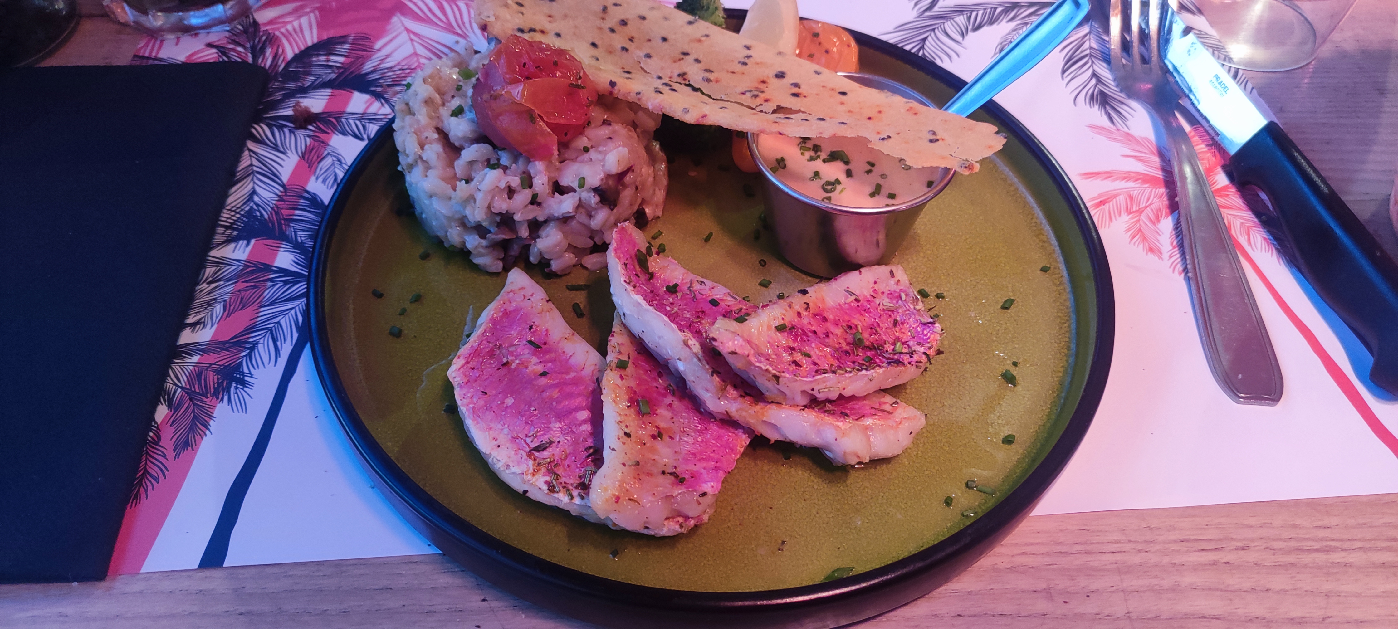 Lieu très sympa , une attente vue sur l'océan ( plutôt cool ) les serveurs sont agréables, le plat est top je conseille fortement