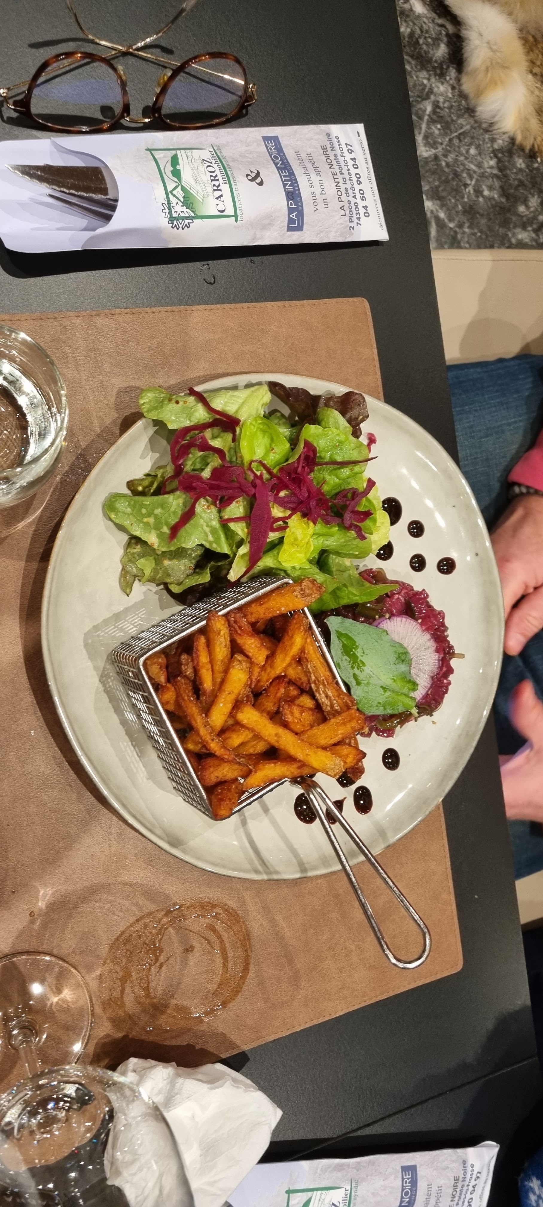 Après la déception d'hier à la croix de savoie aux carroz d'arraches on a décidé de tester la pointe noire au centre ville... pas déçu du tout voir même très satisfait... accueil chaleureux, cadre agréable, propre et moderne, carte gourmande, plats bien présentés, bien servis, du goût et des produits de qualité... un service au top, bref un sans faute. Rapport qualité prix excellent. Une bonne, pardon, une TRÈS bonne adresse... retour ici en 2022 pour un petit apero sympa... première impression confirmée : c'est top ! Côté repas, pas de surprise : excellent ! Tataki de thon en entrée succulent, Burger pour la suite : copieux et délicieux, pour les frites maison, foi de belge, elles n'ont rien à envier aux nôtres et pour dessert la verrine glacée au café et la crème brûlée étaient une tuerie... Le service est souriant et vraiment sympa. Bref je confirme et je signe, ce restaurant est un endroit incontournable lors d'un séjour aux carroz.