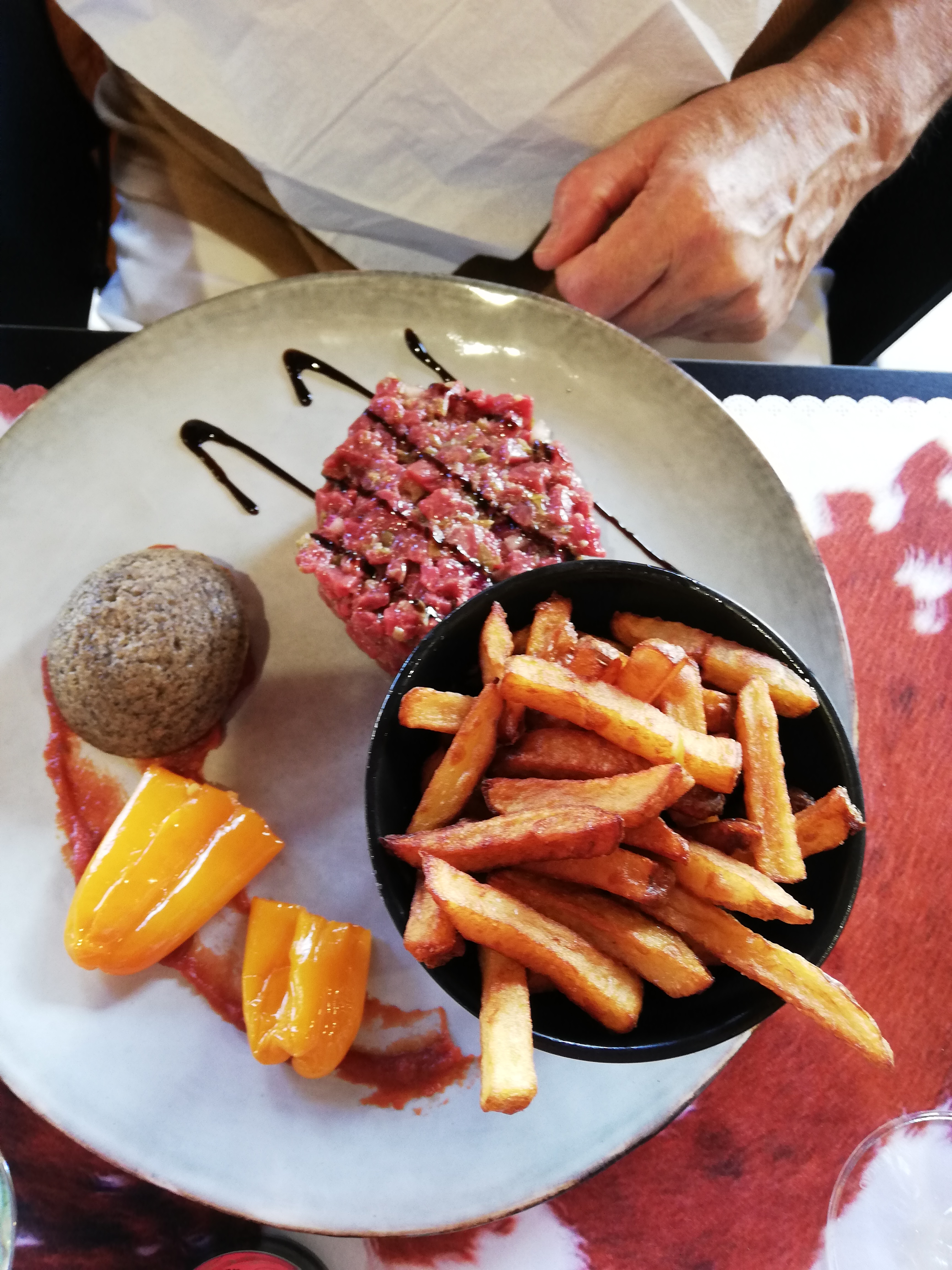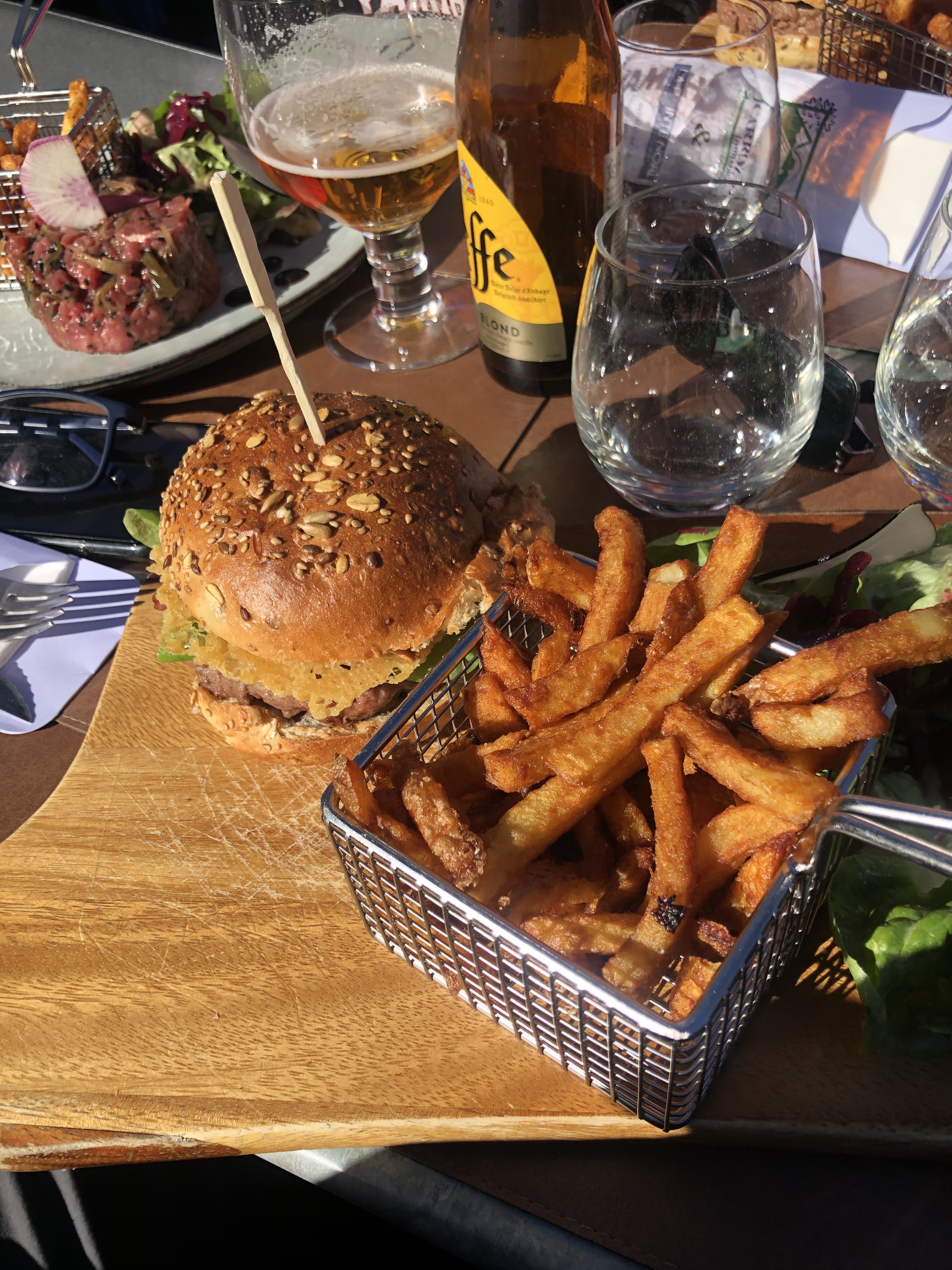 Bon établissement pour se restaurer! La terrasse est plutôt agréable, surtout au soleil! Le service, que j’ai expérimenté est particulier. Malgré que ce soit la haute saison, temps d’attente beaucoup trop long pour un restaurant. La qualité des plats est en revanche très satisfaisante, tartare de petite taille mais savoureux! Même chose pour le burger, qui cale un peu plus! Dans l’ensemble je recommande sauf si vous êtes pressés!